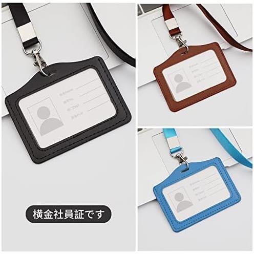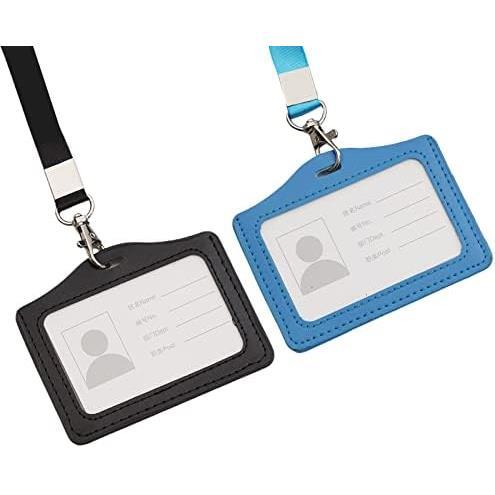 色: ブラック+空色_ブラック+空色 IDカードホルダー 2個 横型 ネームホルダー 首掛け IDカードケース 定期入れ 透明 おしゃれ 社員証 名札 收藏
