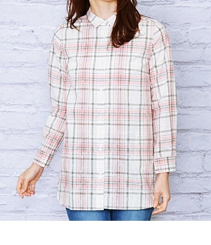 メンズっぽくなりがちなチュニックシャツを女性らしくアレンジしました。