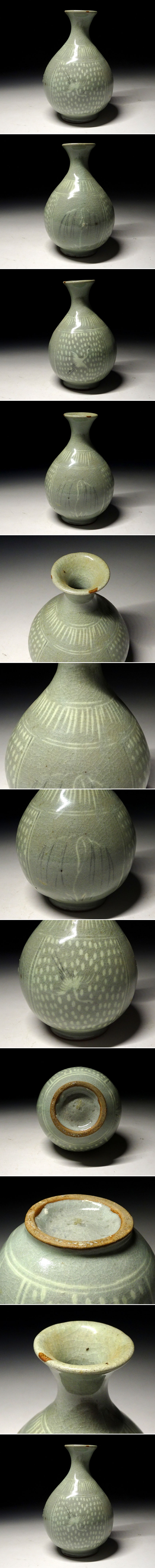 緑屋c■ 朝鮮美術 高麗青磁 徳利 鶴象嵌 朝鮮古陶 時代物 i9/10-6117/30-6#60 收藏
