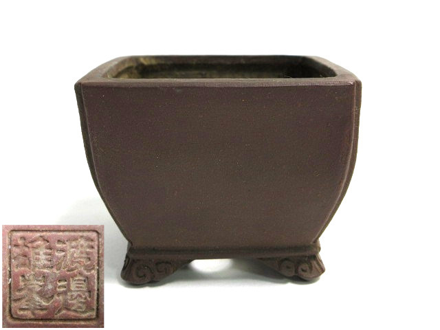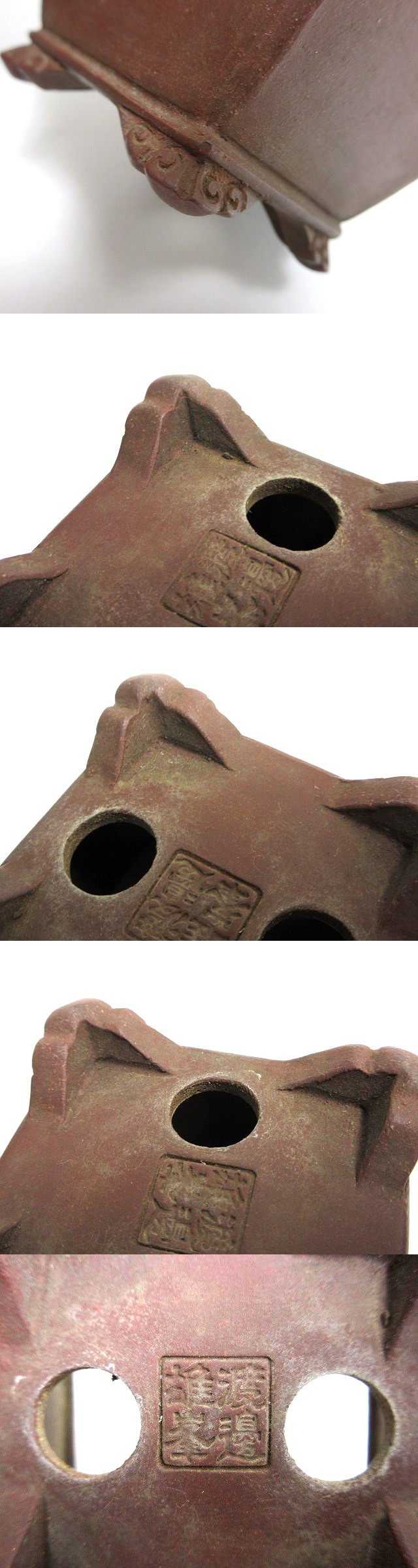 雄峯 朱泥 盆栽鉢 間口約6.3×6.2cm【説明欄に詳細写真有り】の出品です。