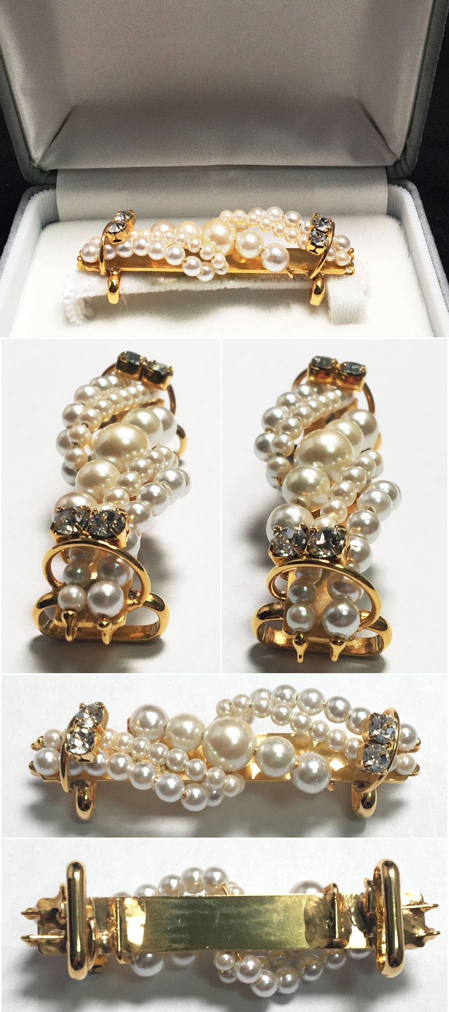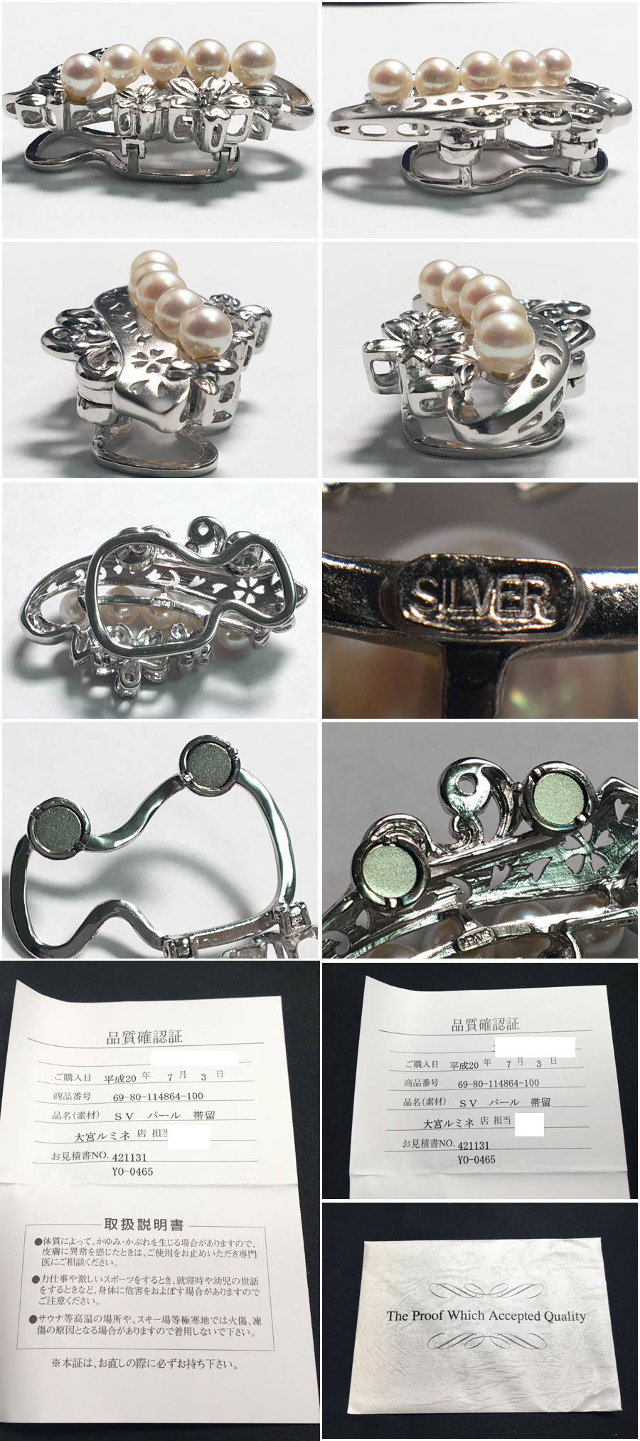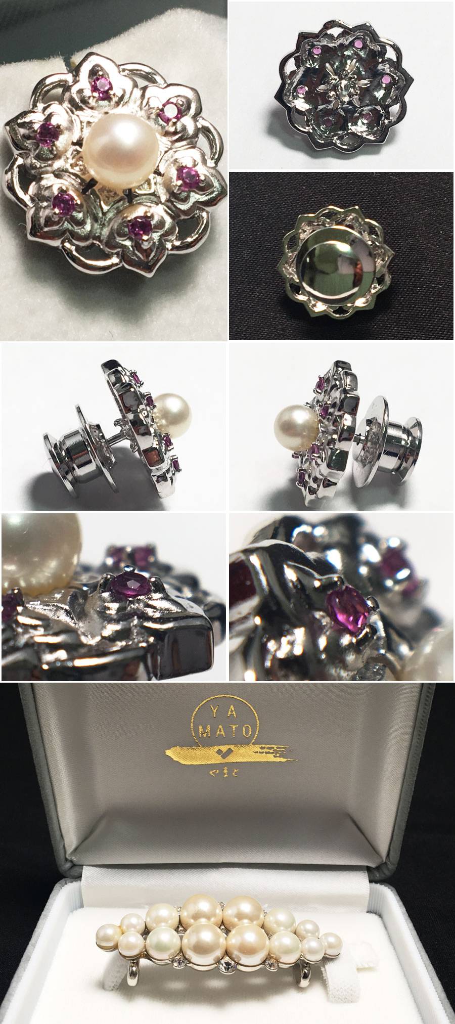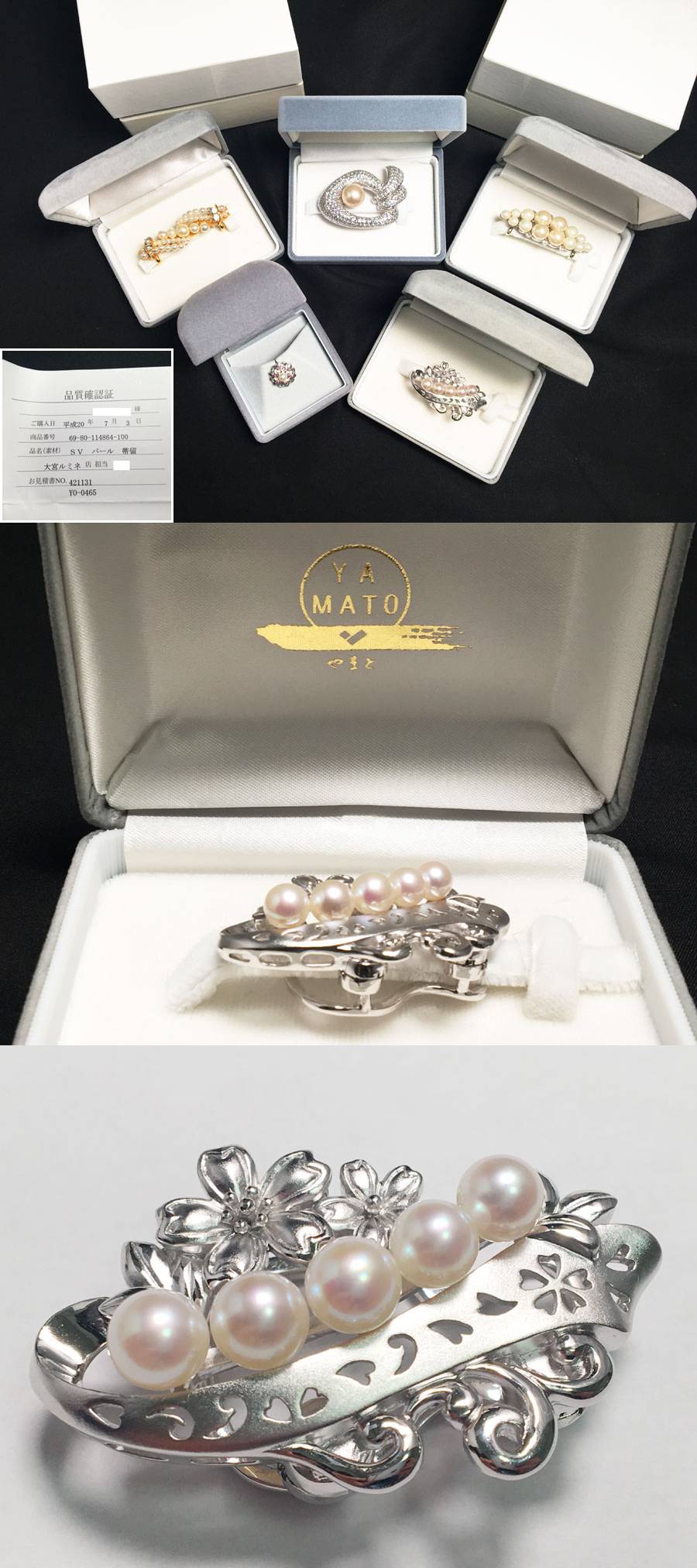 5点セット 帯留め×4 タイピン×1 きものやまと パール (品質確認証付き・留め具表記SILVER×1) フェイクパール 着物 箱・ケース付き 收藏