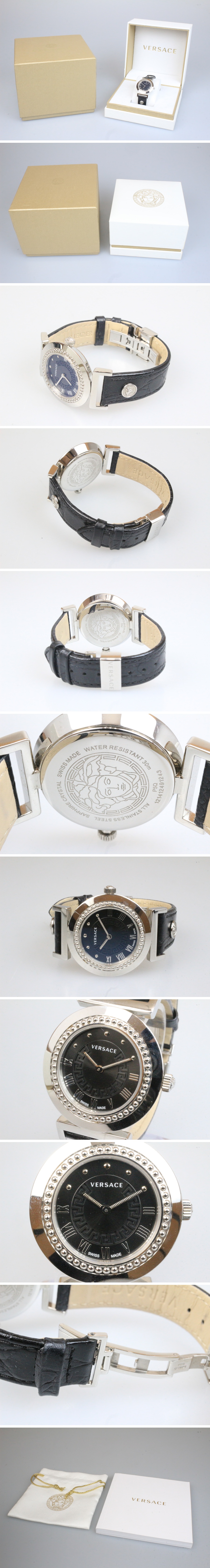 腕時計 ヴェルサーチ VERSACE P5Q ブラック×シルバーカラー QZ クオーツ SWISS MADE ベルサーチ 箱付 7347kiz 收藏