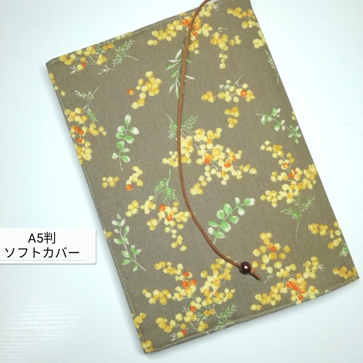 ボタニカル・ミモザ(茶色)☆ハンドメイド☆ブックカバー( A5判ソフトカバー用)