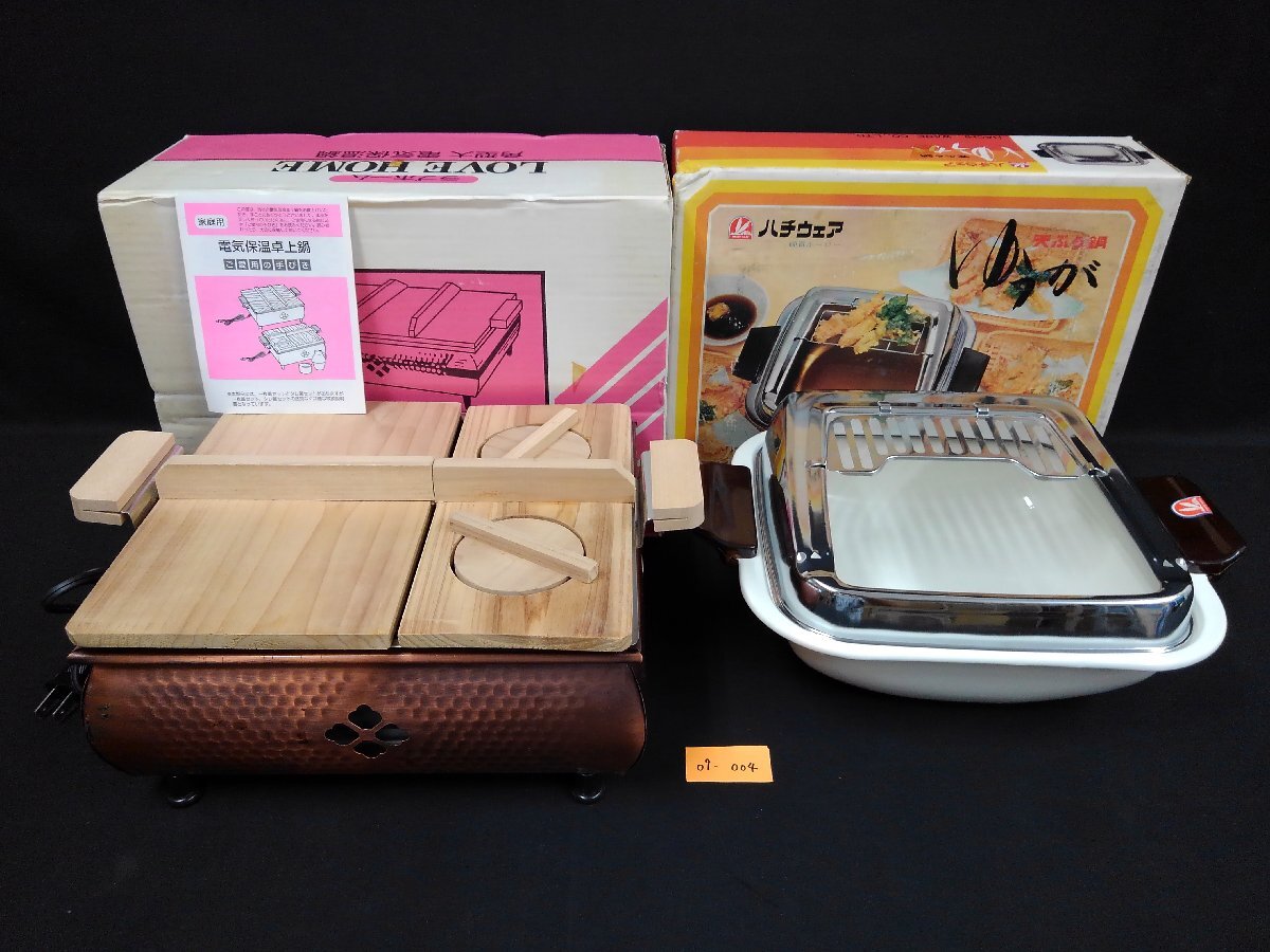 ★09―004★角型鍋 ハチウェア ホーロー鍋 天ぷら鍋/ラブホーム 角型大 電気保温卓上鍋 TC-100型 動作OK 2点まとめて 調理器具[100] 收藏
