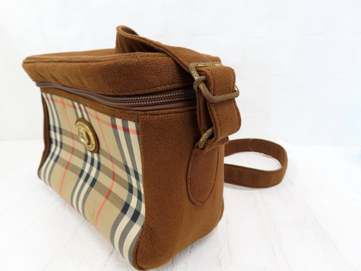 ◆美品◆BURBERRY バーバリー◆ノバチェック◆スエード レザー 本革 ナイロン◆ショルダー バッグ◆茶 ベージュ ゴールド金具◆A13822 收藏