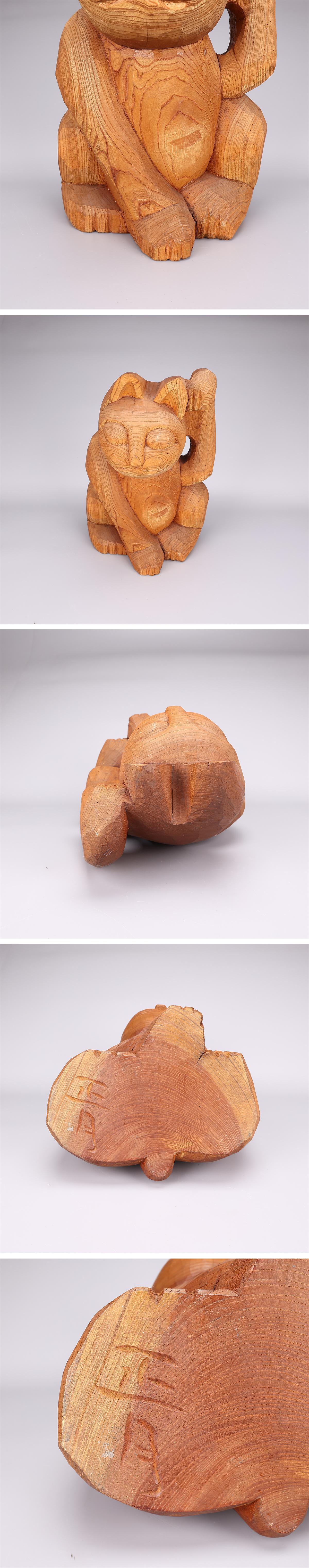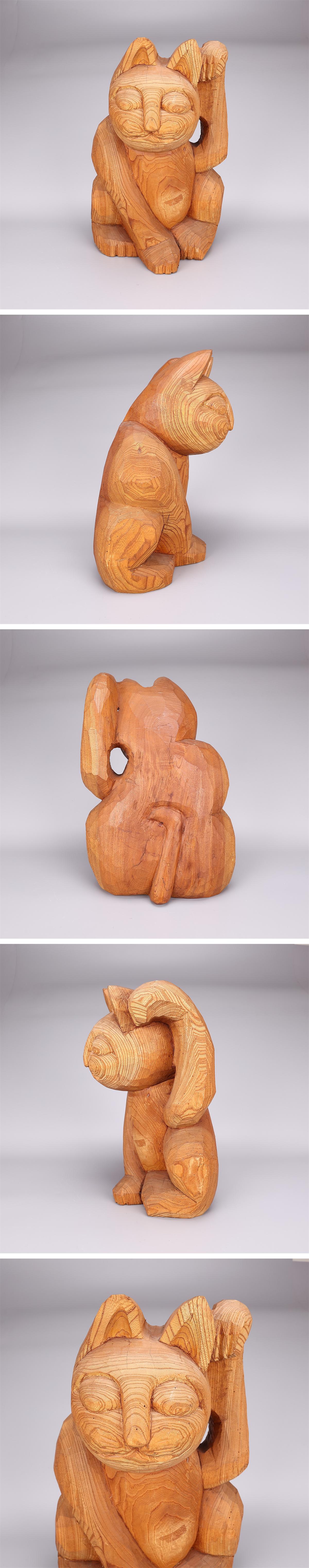 【吉】MB795 時代 【正月銘】 木彫 招き猫 置物 高39㎝ 重7056g/時代の虫食いありg! 收藏