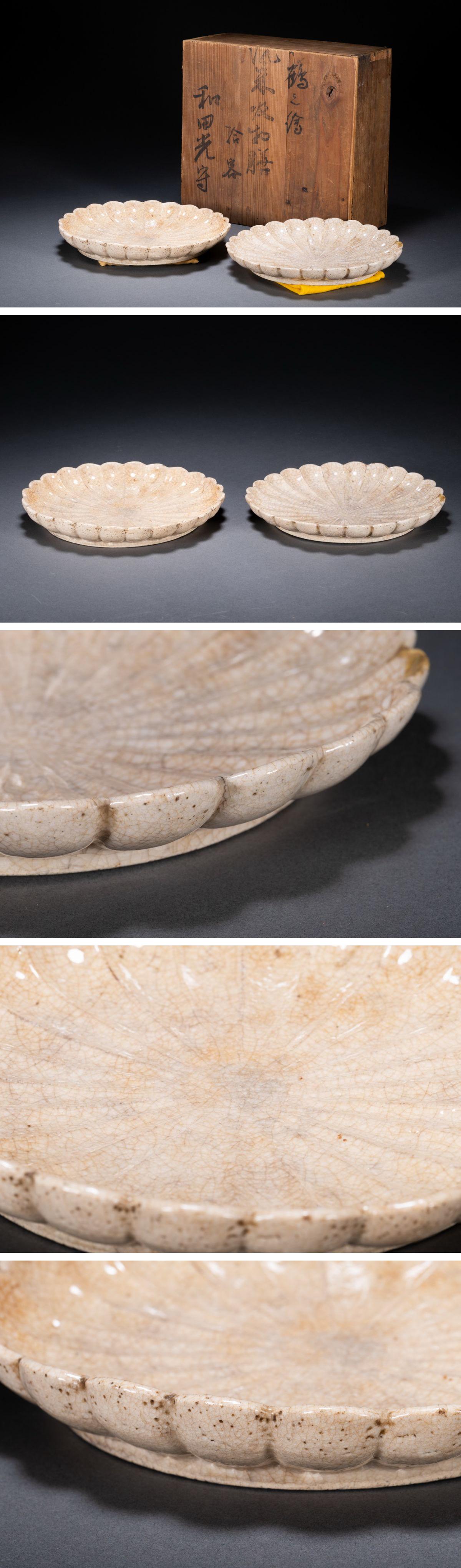 【清】某有名オークション購入 江戸時代 古深井焼 花口盤 当時物保証 古置物 古擺件 古美術 時代コレクション7L9-91S1