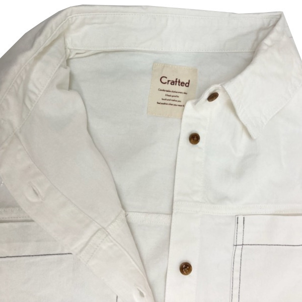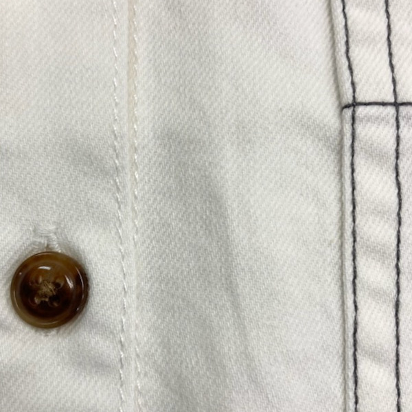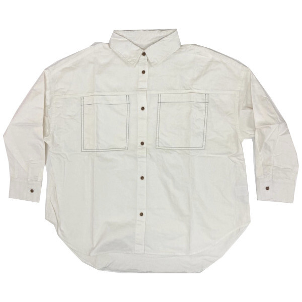 即決新品 レディース 大寸 長袖シャツ ビッグポケット オフホワイト LL-3L 綿100% デニム調 送料無料 收藏