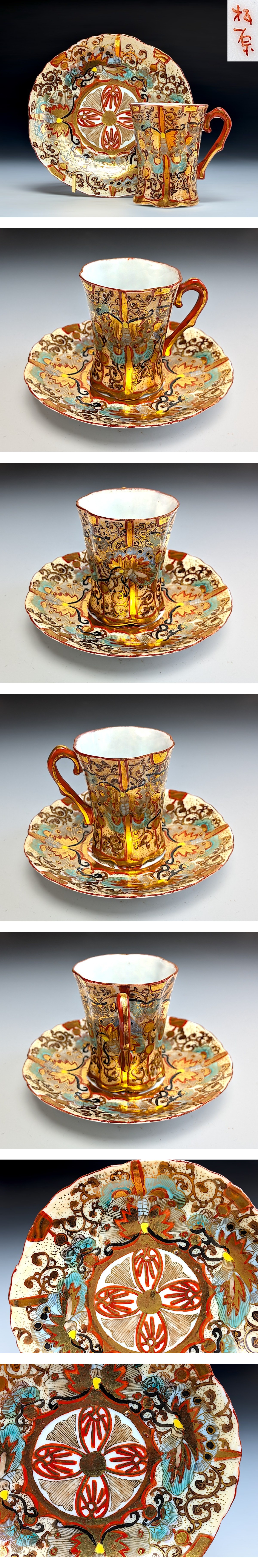 オールドニッポン 松原造 金彩 蝶紋図 カップ&ソーサー | ||||