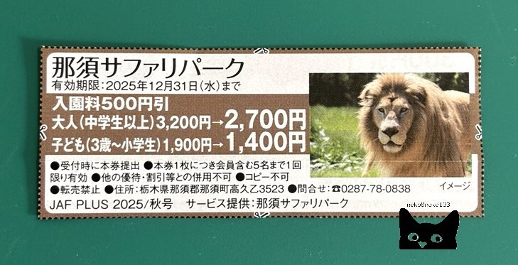 ☆【那須サファリパーク】★入園料 大人・小人 500円引★JAF クーポン 優待券 割引券 関東エリア 2025.12.31まで☆ 收藏