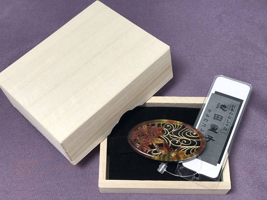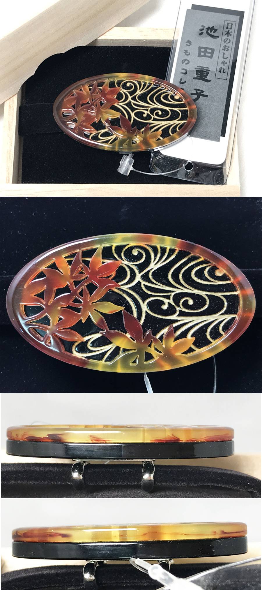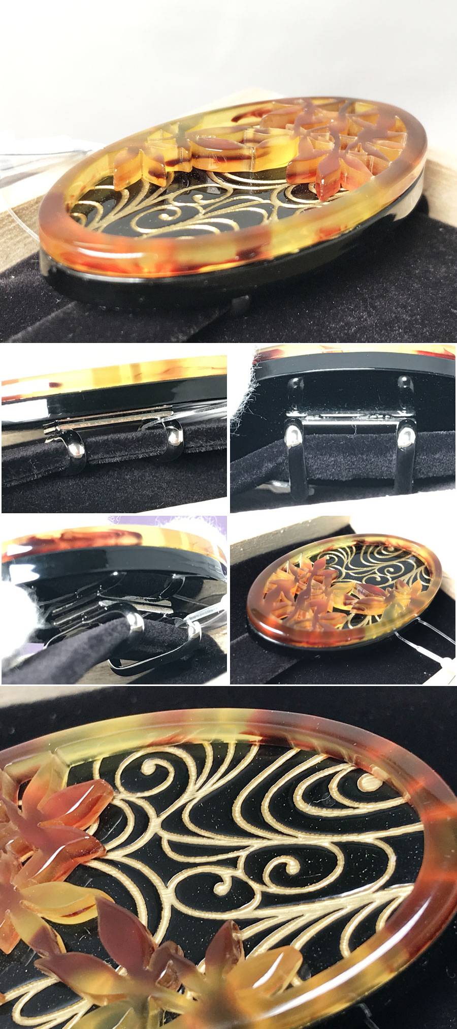 ◆未使用!池田重子 帯留 きものコレクション 日本のおしゃれ 鼈甲 紅葉 透かし彫り 金蒔絵 和装小物 木箱・タグ付き 定価21,780円 收藏