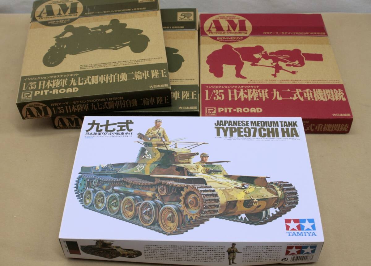 ■タミヤ 1/35 日本軍九七式中戦車 チハ ■アーマーモデリング 1/35 日本陸軍九二式重機関銃 ■ 日本陸軍九七式側車付自動2輪車「陸王」 收藏