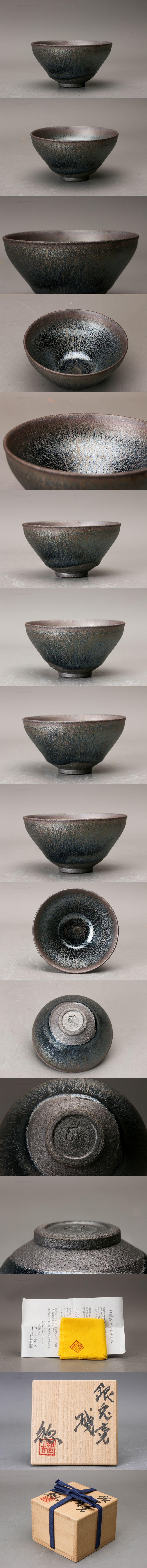 【SAG】九代 長江惣吉 銀兎毫盞 ぐい呑 素山窯 共箱 共布 栞 本物保証 收藏