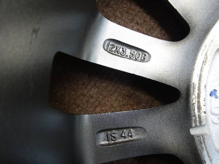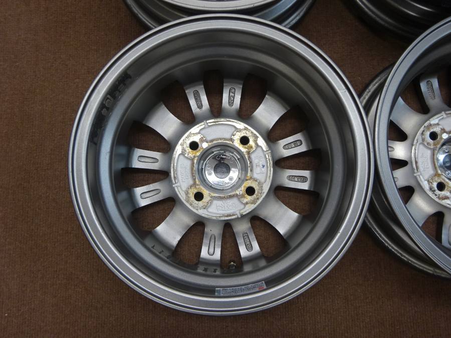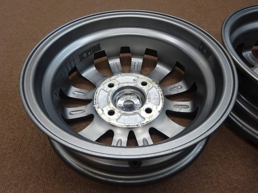 ホイールの設定 3.5J オフセット+44 PCD100 4穴 ハブ径 約67mm ホイールの重量 約4.3kg 人気のデザイン 軽トラック等 軽自動車に是非! ※状態ですが傷がございます。 その他の状態ですが見解にて歪み、割れ等はございませんでした。 (個人差はございますので写真で判断宜しくお願い致します。) | ||||