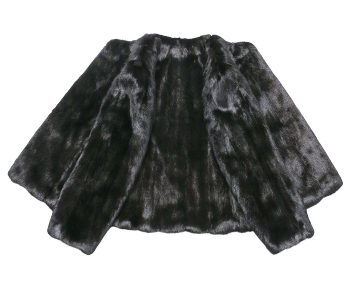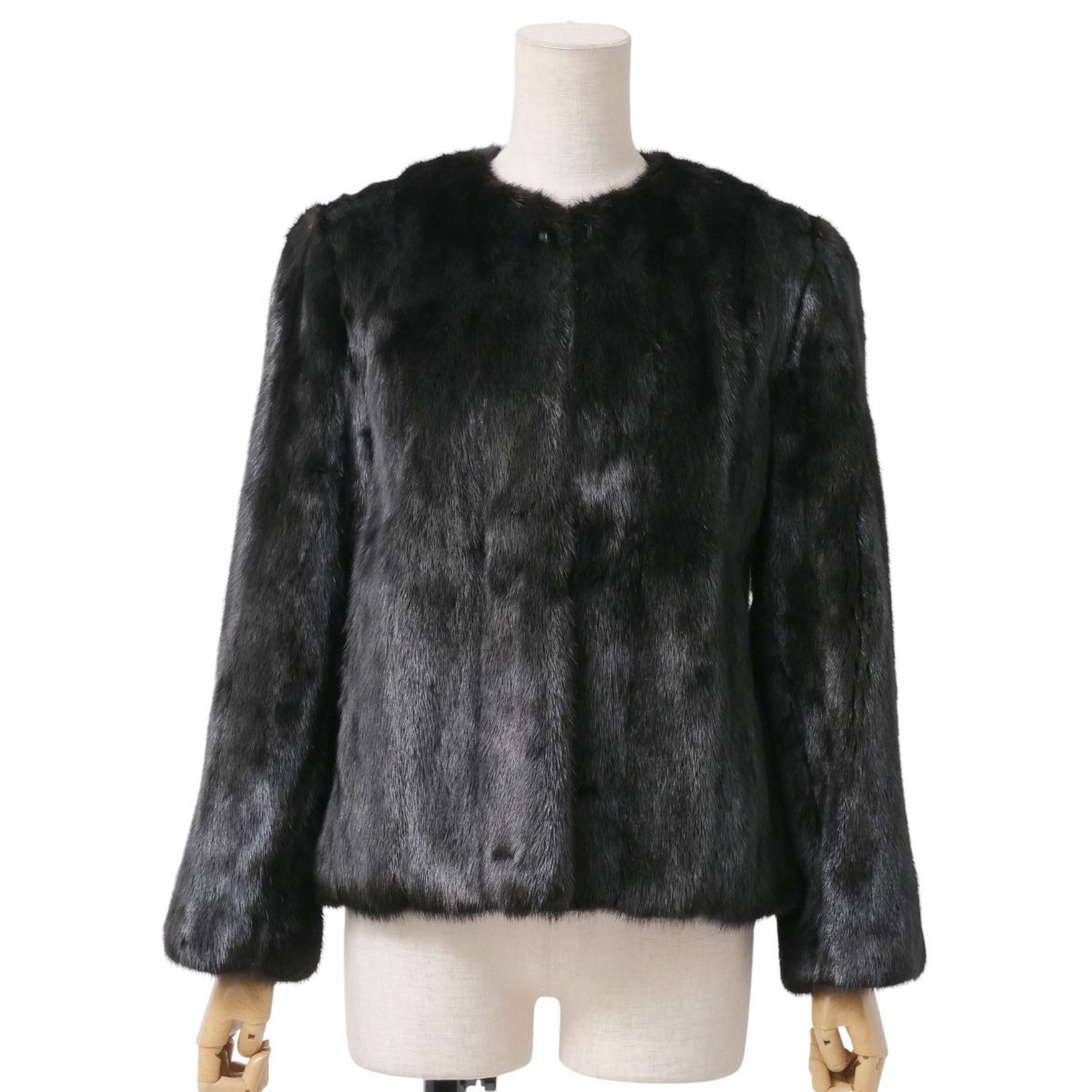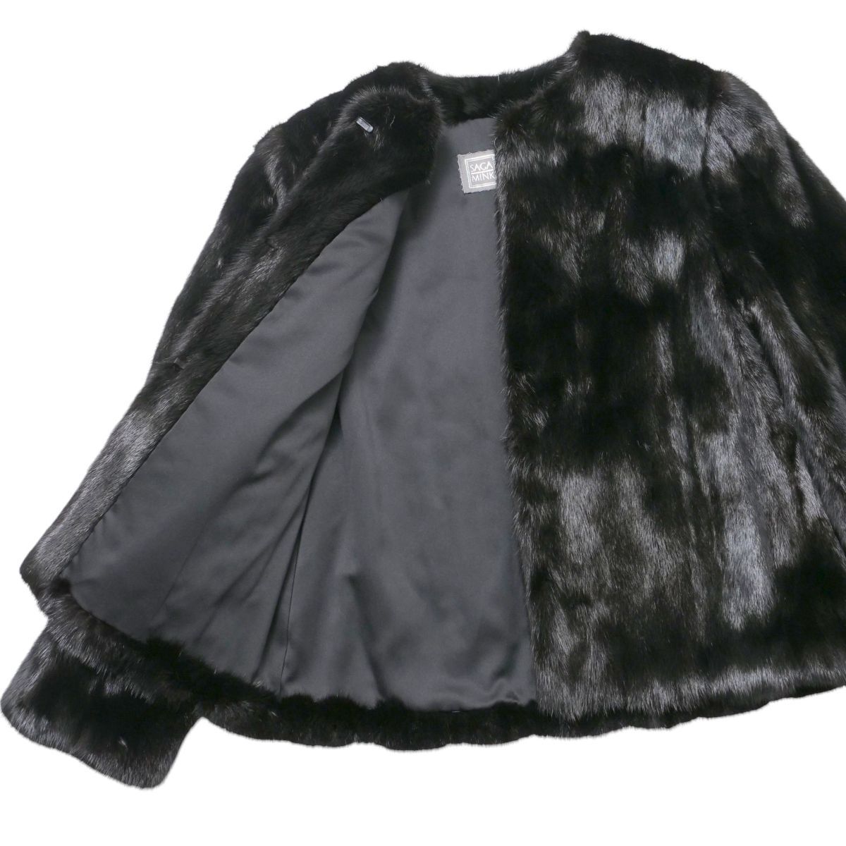 GS2876◇SAGA MINK サガミンク 銀サガ ブラックミンク ノーカラー ファージャケット ファーコート ショート丈 M相当 毛皮コート 收藏