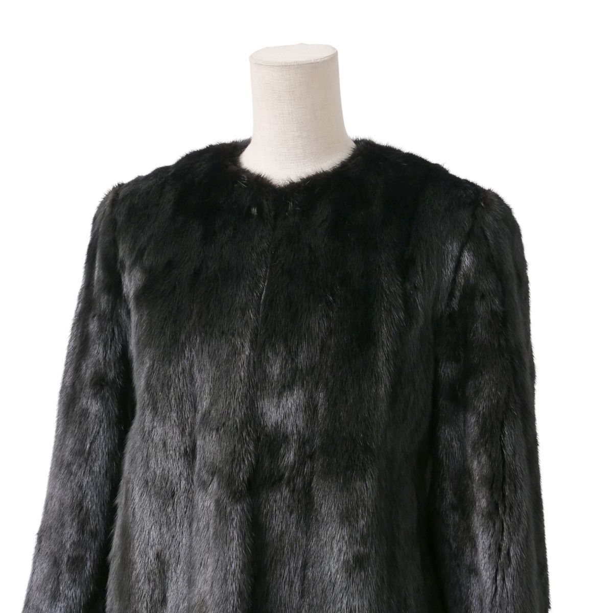 | GS2876◇SAGA MINK サガミンク 銀サガ ブラックミンク ノーカラー ファージャケット ファーコート ショート丈 M相当 毛皮コート | |||