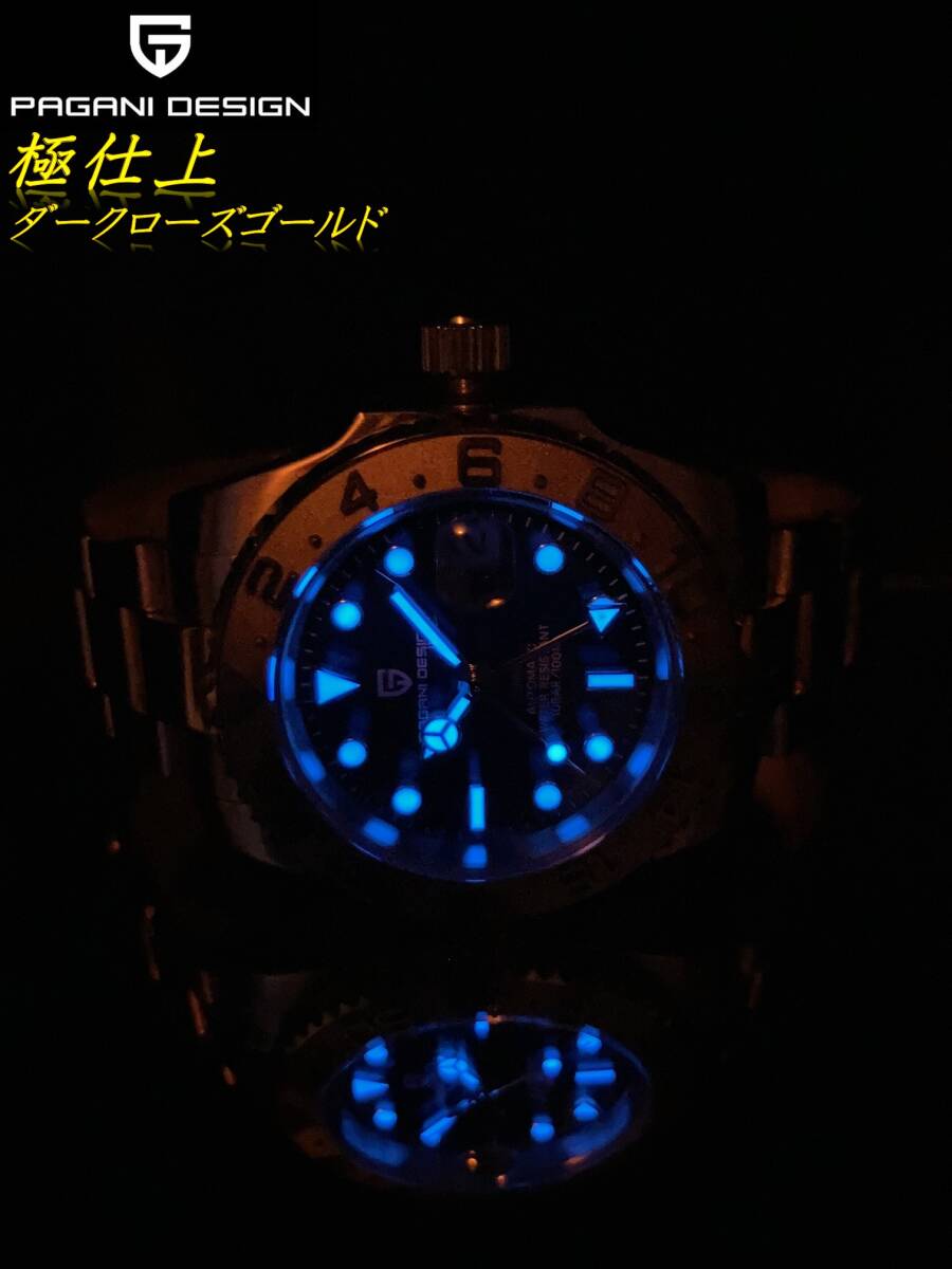 ■極仕上/調整済/10日保証付/新品に極めて近い1回だけ使用USED/中古品(GMTマスターⅡオマージュ)[Pagani Design](機械式時計)ダークRGベゼル