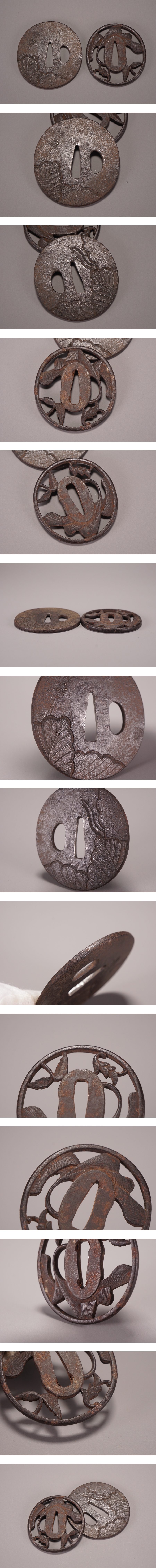 NS0210◆刀装具 鉄味抜群 古鉄 葉紋 鍔 透鍔 鉄鍔◆時代武具 金工 甲冑師 蔵出し 骨董品 古美術【レターパックプラス対応】 收藏