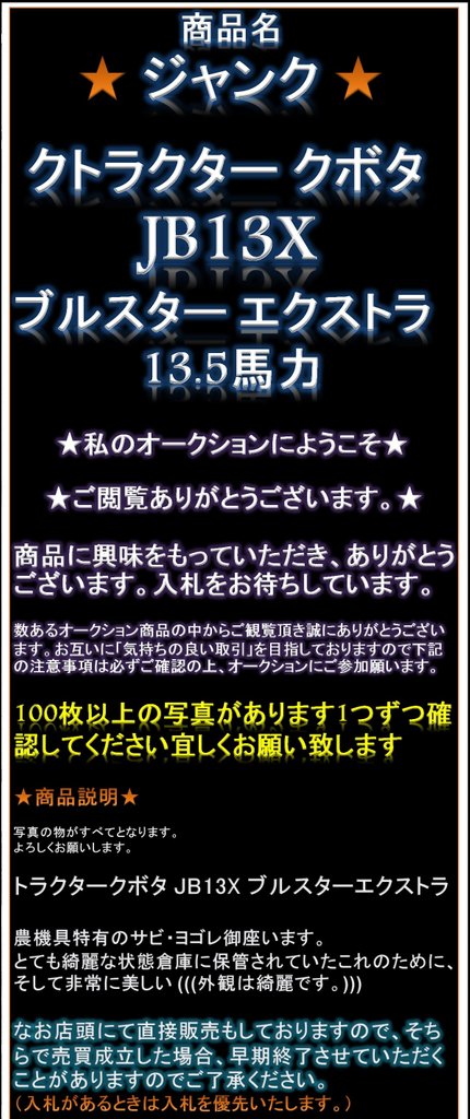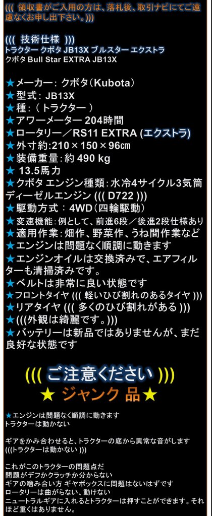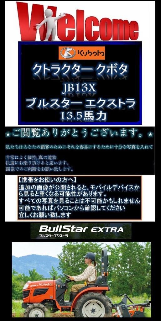 トラクター クボタ JB13X ブルスターエクストラ アワーメーター204時間/13.5馬力/4WD/クボタ エンジンD722/3気筒/★ジャンク品★(安い送料) 收藏