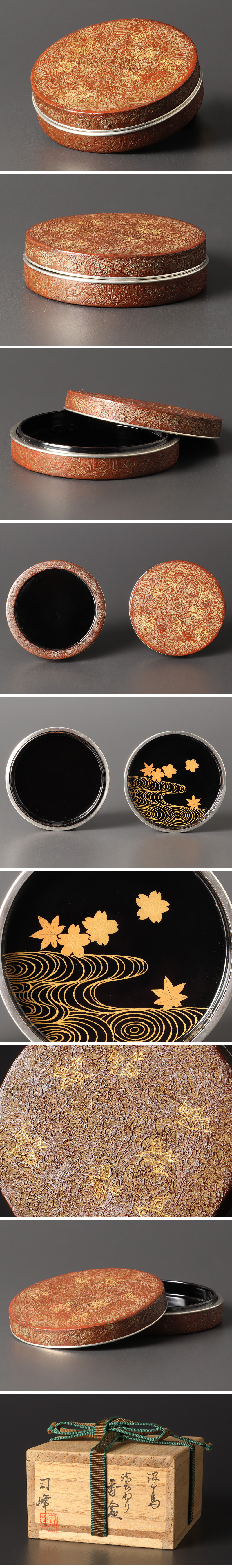 | 【古美味】新井司峰 波千鳥 漆ひねり 香合 茶道具 保証品 |