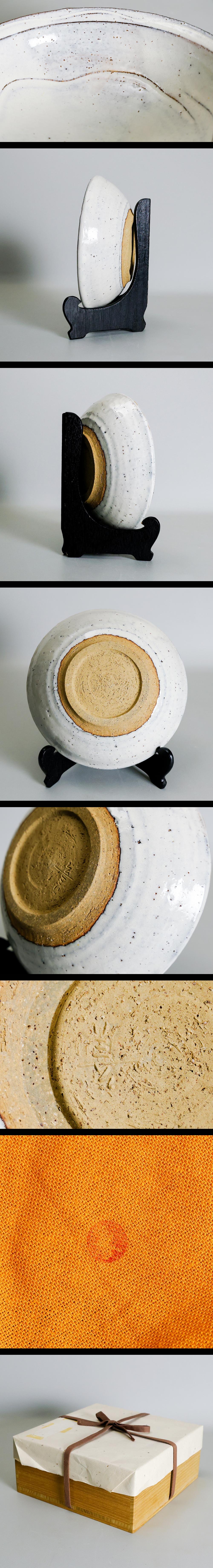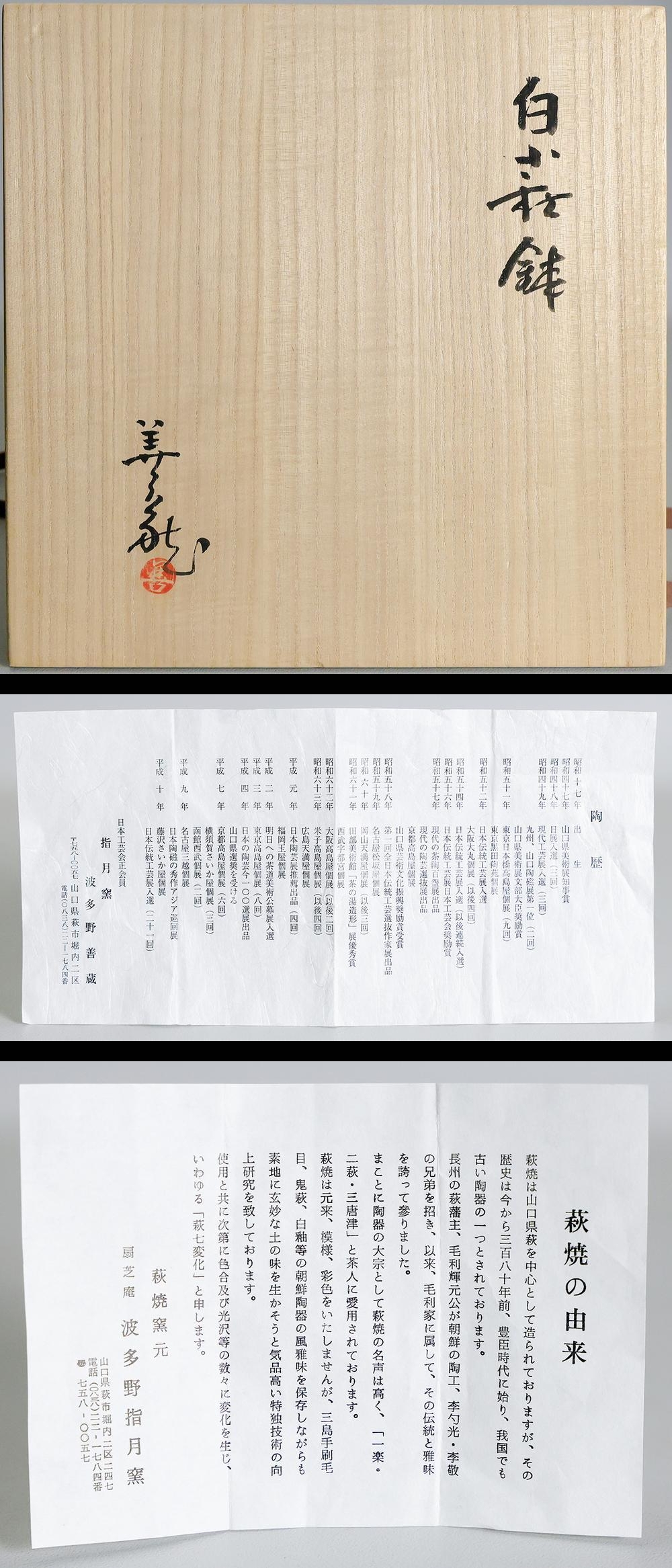 【真作】【WISH】波多野善蔵「白萩鉢」 萩焼 共箱 直径25.5㎝ 〇山口県無形文化材 日本工芸会正会員 師:吉賀大眉 #25106035 收藏