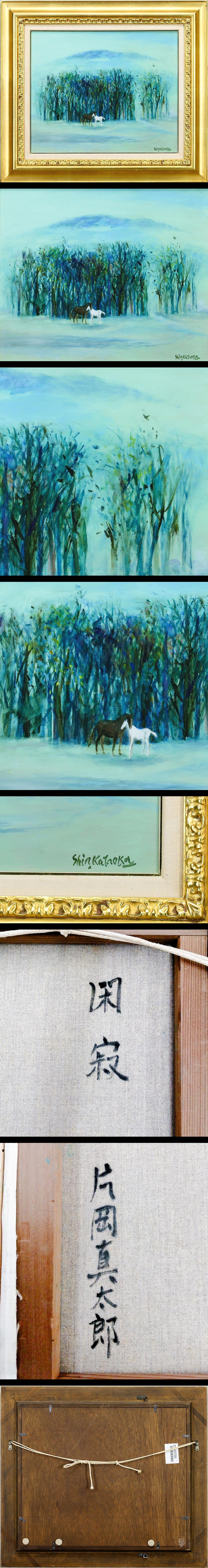 【真作】【WISH】片岡真太郎「閑寂」油彩 8号 ◆静寂に寄り添う白と黒の馬 〇立軌会同人 元多摩美術大学教授 #25103705 收藏