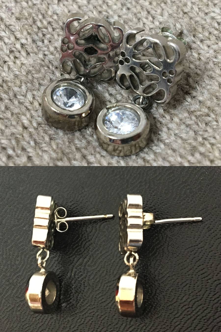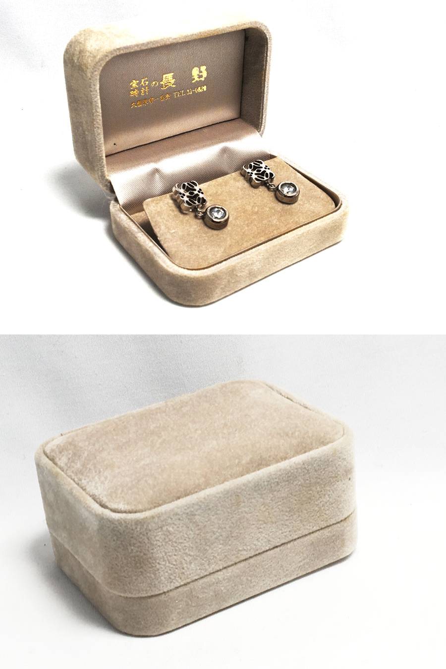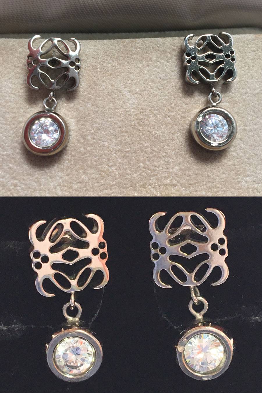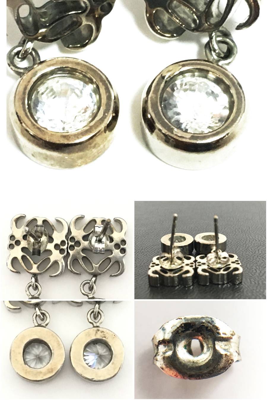 LOEWE ロエベ アナグラム ピアス 1点(K10WG)キャッチ付き シルバーカラー×クリアストーン ラインストーン ホワイトゴールド ケース付き 收藏