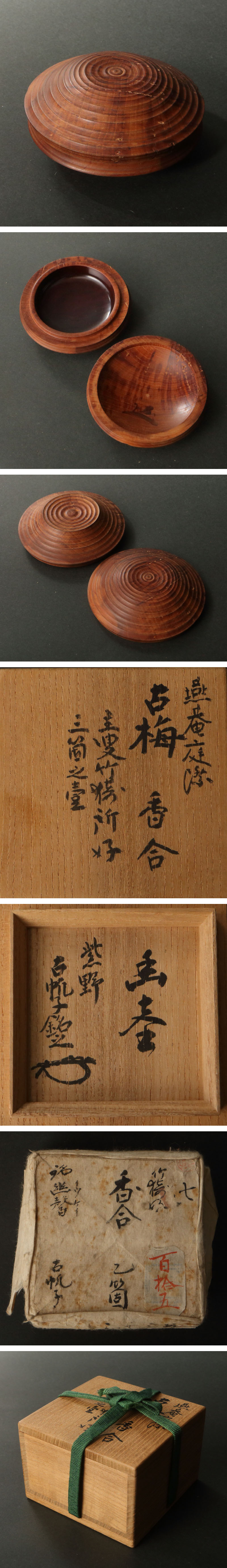 【深和】藪内真々斎在判 燕庵庭際古梅香合 古帆子書付「幽馨」(藪内流 宗匠 茶人 茶道具 木地香合 合子 糸目香合 大徳寺 禅僧) 收藏