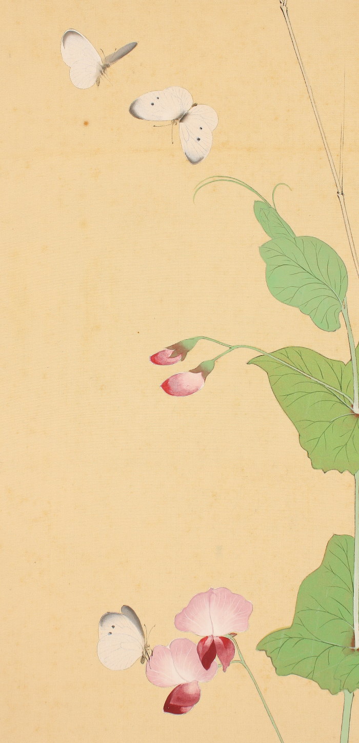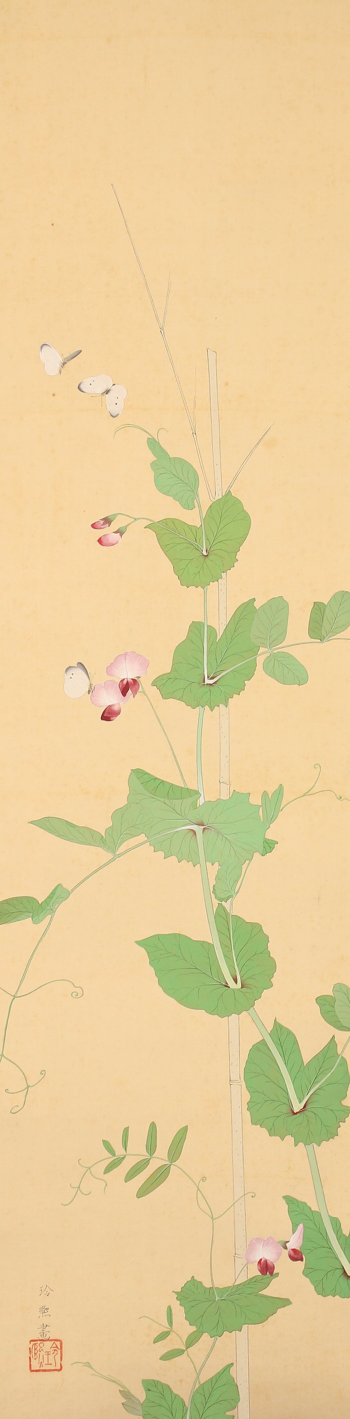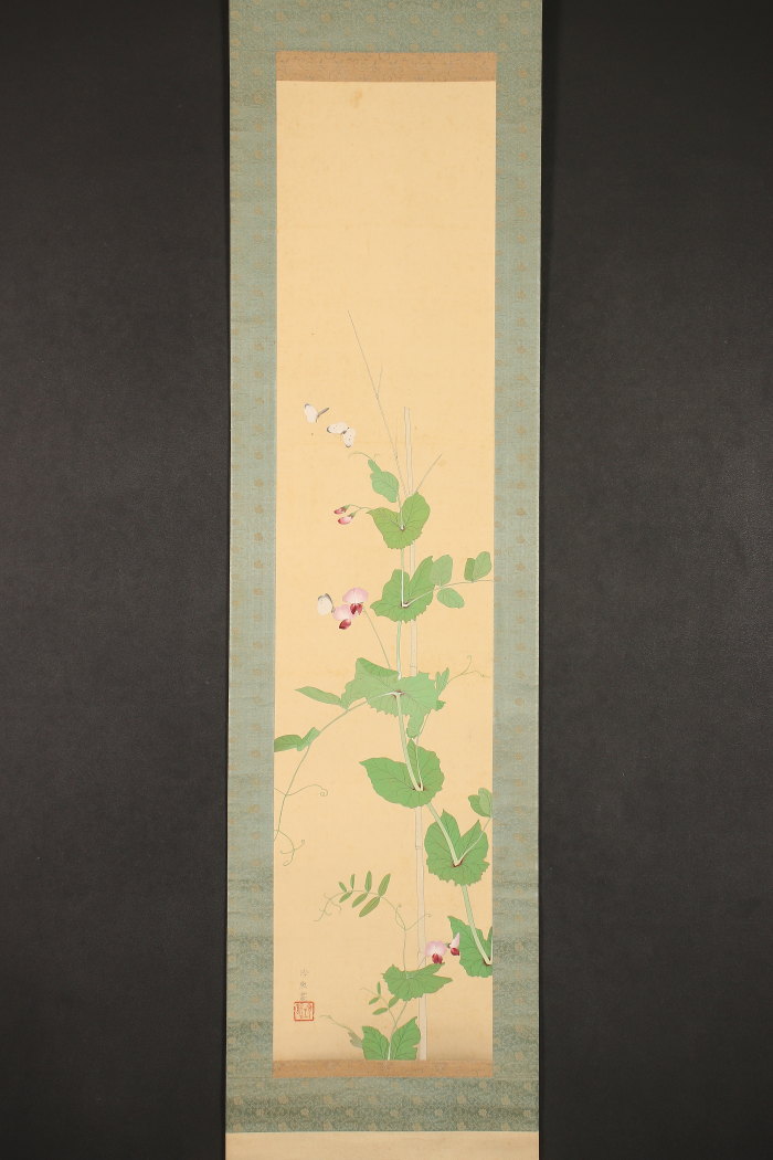 【模写】【伝来】am5197〈山口玲煕〉蝶花図 共箱 菊池芳文・菊池契月師事 画家 京都の人 收藏