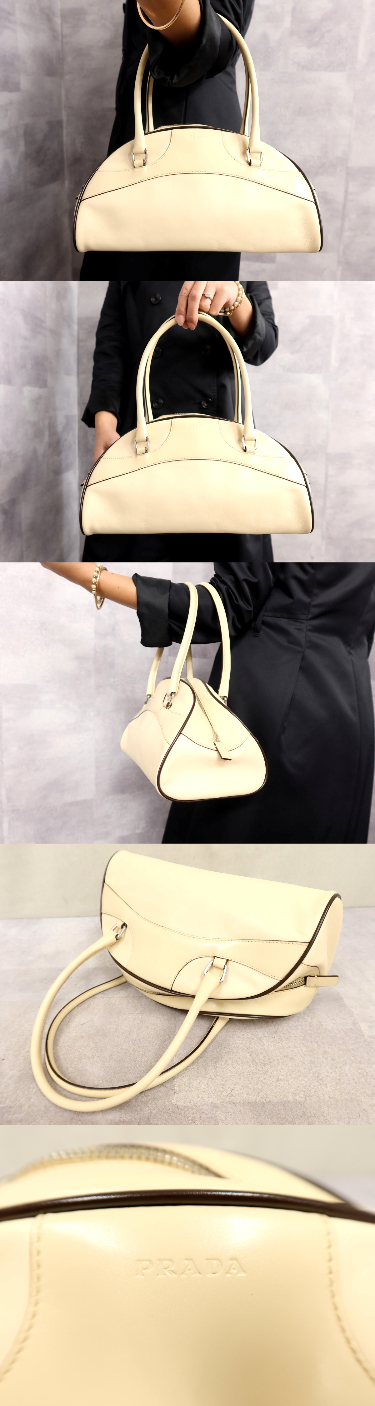 ●超美品●PRADA プラダ●ロゴ型押し●カーフ レザー 本革●ハンド バッグ●ベージュ●シルバー金具●腕掛け●イタリア製●かばん●Js62961 收藏