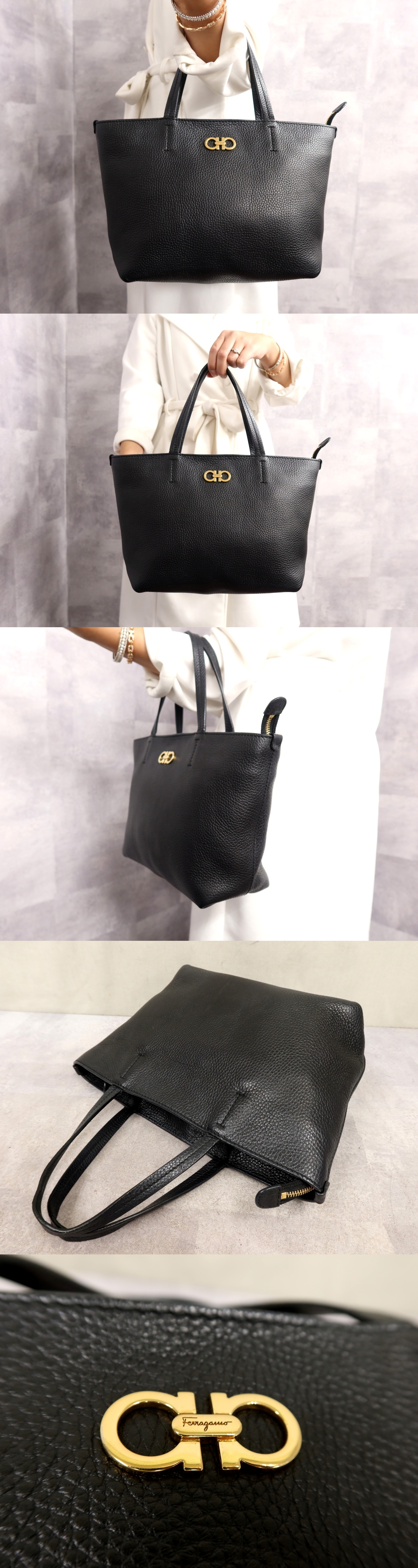 ●超美品●Salvatore Ferragamo フェラガモ●ダブルガンチーニ●カーフ レザー 本革●ハンド バッグ●黒●ゴールド金具●腕掛け●Js63014 收藏