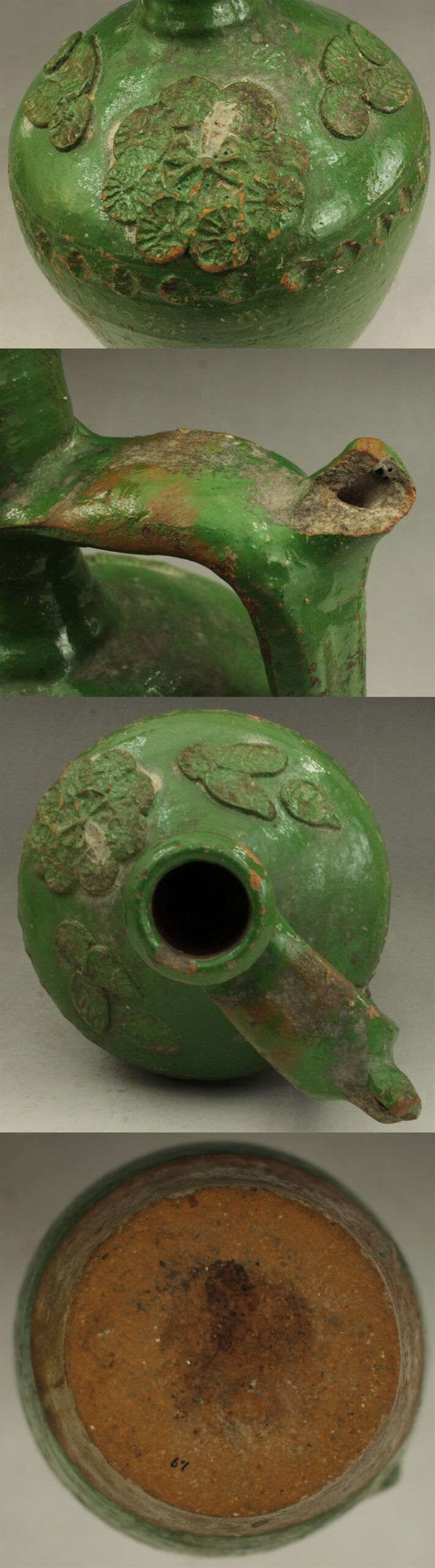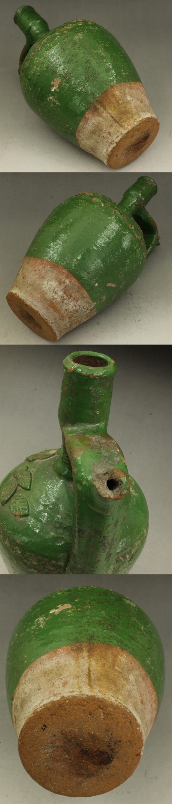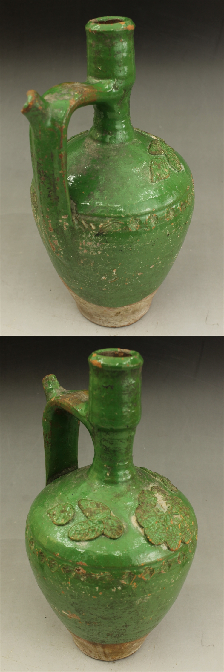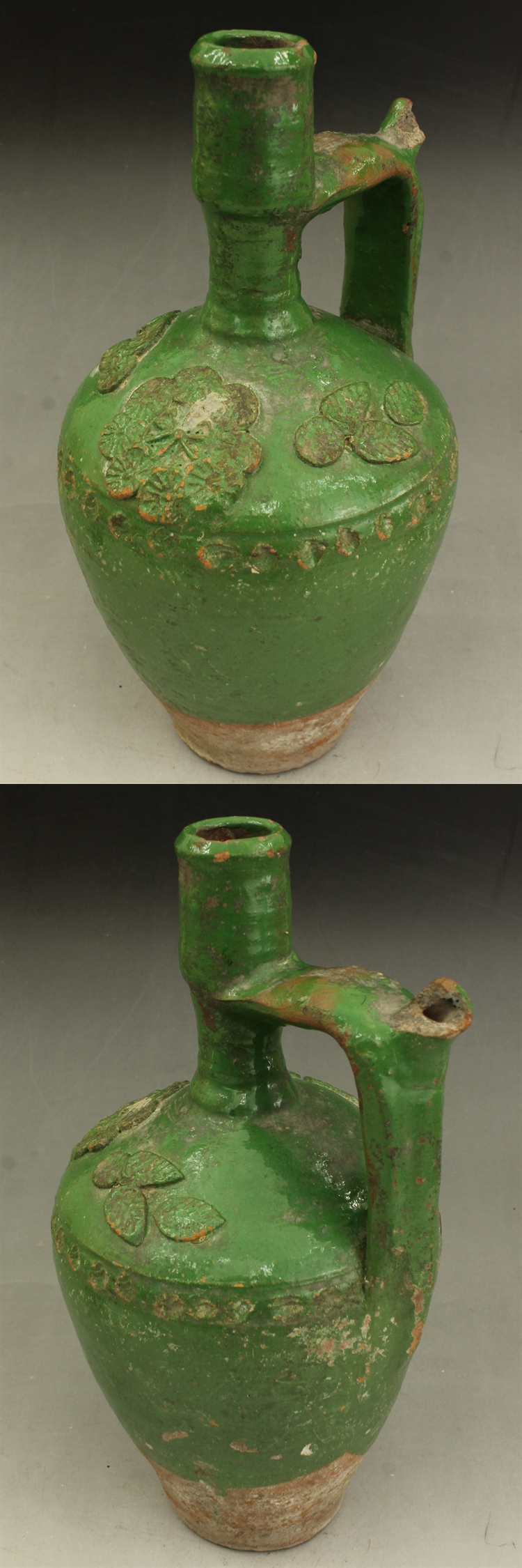 D631 緑釉 花紋 壷 水差し 高さ30.5㎝ 東南アジア・中国古陶器模写複製品 トルコ? イスラム陶器? 蔵出し 古玩 珍蔵 收藏