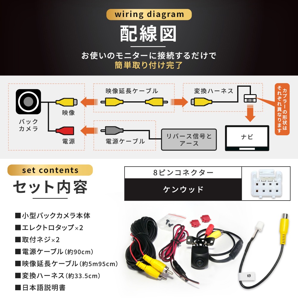 バックカメラ セット 小型 広角CCD 防水 汎用 高画質 RCA配線 変 換 カーナビ 車 本体 リアカメラ ホンダ ガイドライン表示 8ピン 8P 收藏