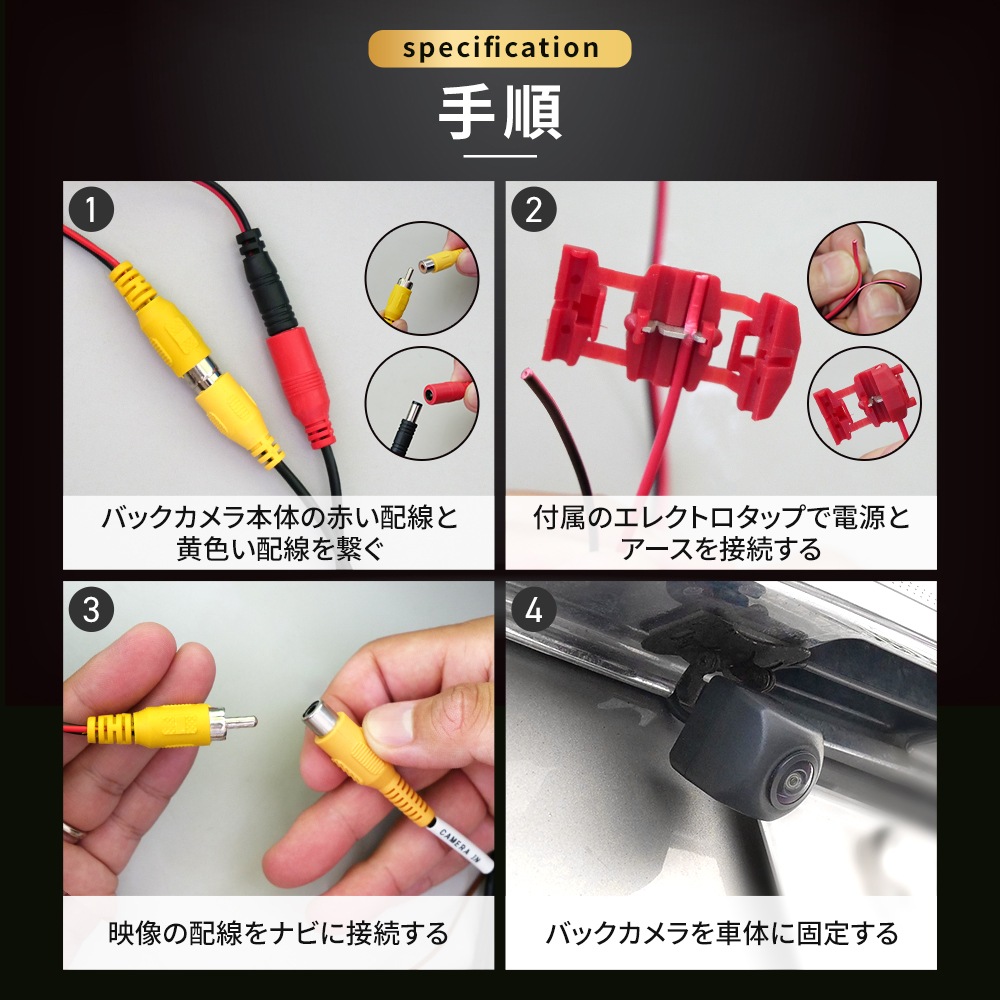 ![]() ![]() ![]() ![]() 超小型 CCD 車載用 バックカメラ セット 安全性を高める超広角リアカメラ ノイズが少なく夜でも綺麗な映像 ■ポイント ガイド線表示機能 暗所に強い高性能CCDカメラ ■商品内容 カメラ本体 映像ケーブル 電源ケーブル 配線接続用エレクトロタップ カメラ固定用ネジ 日本語取り扱い説明書 ■カメラサイズ 23mm×23mm×27mm ■仕様 電源:12V 消費電力:110mA 防水設計:IP68 信号方式:NTSC センサー:CCDセンサー その他詳細に関しては商品画像をご確認ください。 |