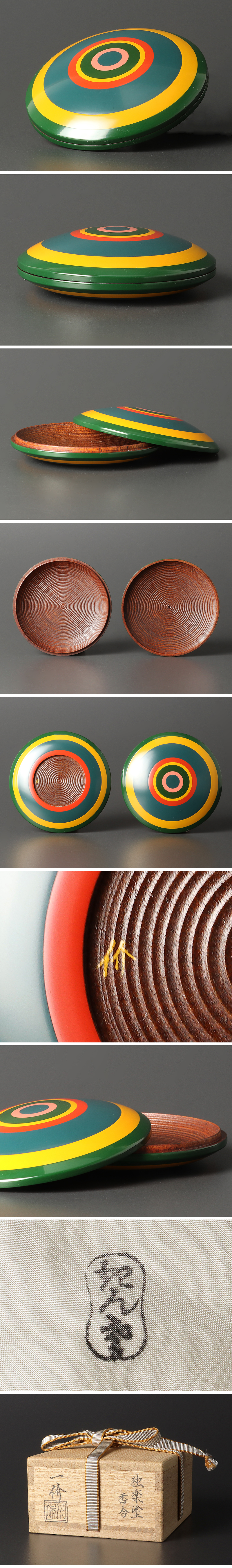 | 【古美味】六代川端近左(一价) 独楽塗 香合 茶道具 保証品 |