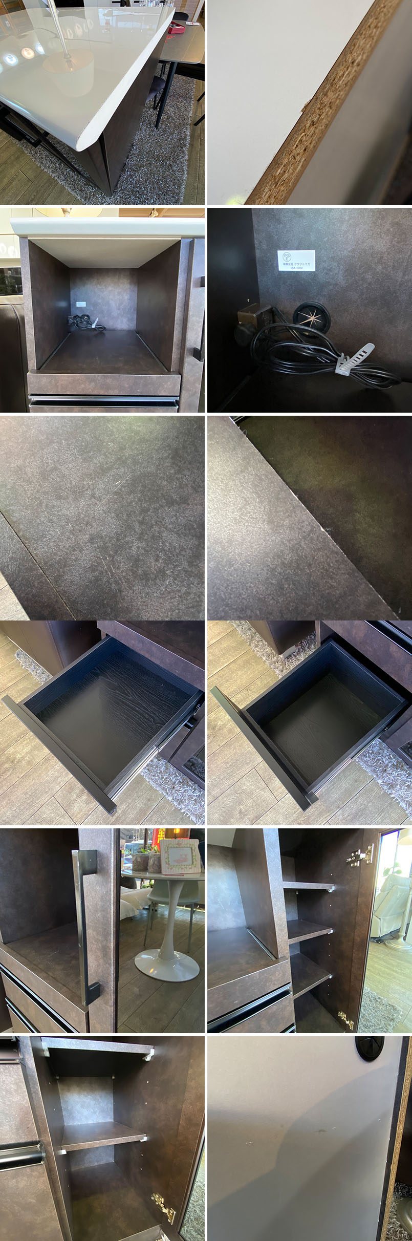 こちらはCRAFT KOGA クラフトコガ キッチンカウンター 70RBカフェA 石目調 ブラウン系 レンジ台 です。 中古品です。 スライド棚+引出し+扉収納で抜群の機能性。 1台あると嬉しい、おしゃれなキッチンカウンターです。 オープン部分は、かがまずに楽に作業ができる使いやすい高さに設計されています。 天板にはレンジ、電気ケトル、スライド棚には炊飯器が置けて 開き扉には食器など、省スペースながらもたっぷり収納できます。 浅い引き出しと深めの引き出し両方あるので、 カトラリーをしまったり、お米やレトルト食品、ボウルなどの調理用品をしまっても◎ ![]() 扉収納の高さ調整可能な棚板には耐震ダボを採用。 地震などの際に棚板が外れるのを防ぎ、収納物の落下を軽減します。 鏡面仕上げのホワイト天板に落ち着いた石目調のブラウン系カラーがモダンな印象のお品です。 お洒落なブラックカラーの取手もアクセントになっています。 この機会にぜひいかがでしょうか。 【コンディションについて】 多少の使用感や小傷があります。 詳細につきましては下記画像も合わせてご参照ください。 ![]() また、こちらのお品は 再良市場 天白店(名古屋市天白区焼山1丁目308番地)にて店頭展示しております。 現物を確認してみたい方は、是非、再良市場 天白店にお越しください。 再良市場の他のお品物はこちらから!