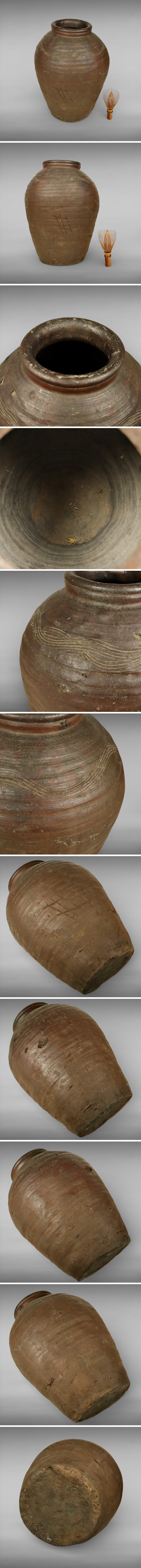 室町期 備前焼 古備前 壷 波状紋 岡山県 華道具 古陶磁 古美術 骨董品 壺 花瓶 花入 花生 花器 1959vbyN 收藏