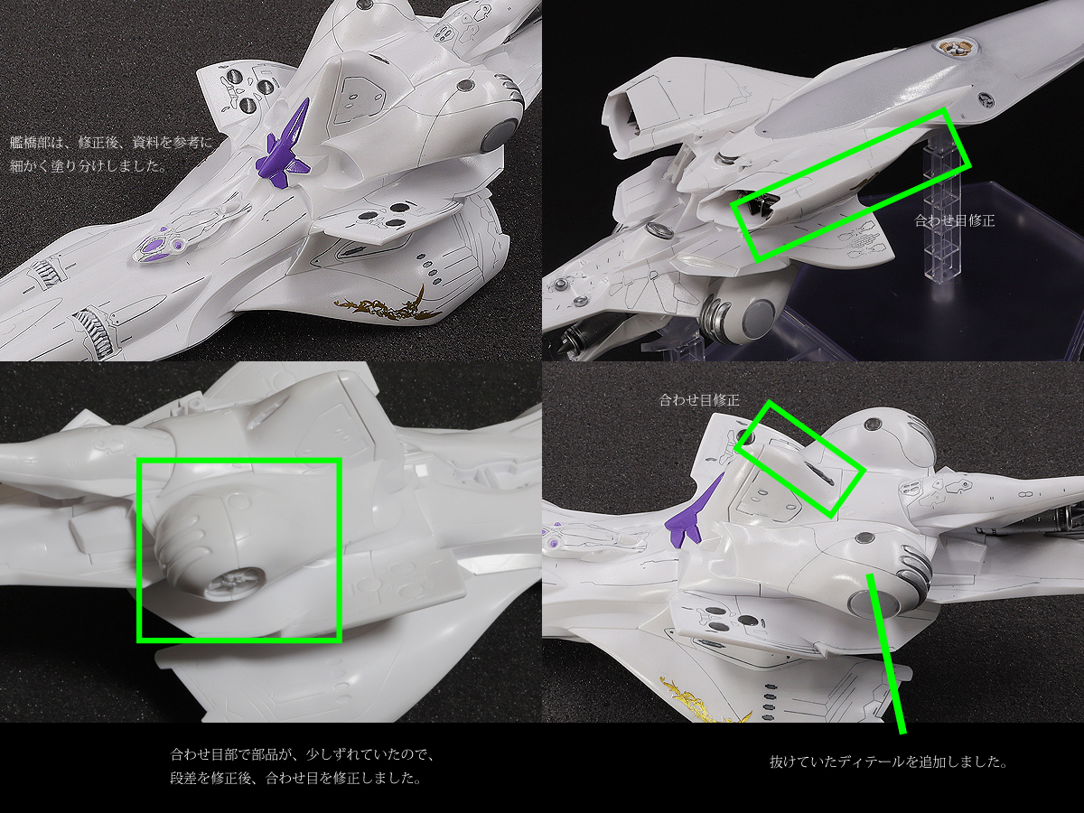 ヒケ・彫りの浅い部分は彫り直し等→洗浄→サーフェイサー→塗装→光沢