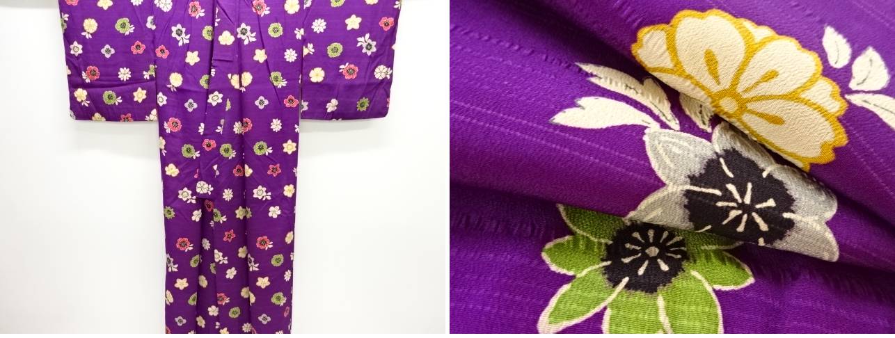 | お着物の状態をできる限りお伝えできるよう努力しておりますが、当店で出品の商品は全てアンティークになります。 一品一品丁寧に検品の上、出品させて頂いておりますが、稀に小さな見落としや、アンティーク特有の経年に伴う汚れや傷のある場合もございますので、アンティーク・中古品にご理解ある方のみのご入札をお願い致します。 寸法に関しましては、一品一品手作業での採寸であり、性質上生地の伸縮性もございますので、若干の誤差はご了承ください。 ごく稀にですが、樟脳やアンティーク特有の匂いがある場合がございます。 匂いに関しては、商品コメントには記載しておりませんので、ご理解の上ご入札下さい。 はぎれ商品につきましては、解き商品が多くなっております。 生地端に縫い糸の残りが多く残った状態での出品となります。 ご理解の上でのご入札と、ご自宅でのお手入れをお願い申し上げます。 | |