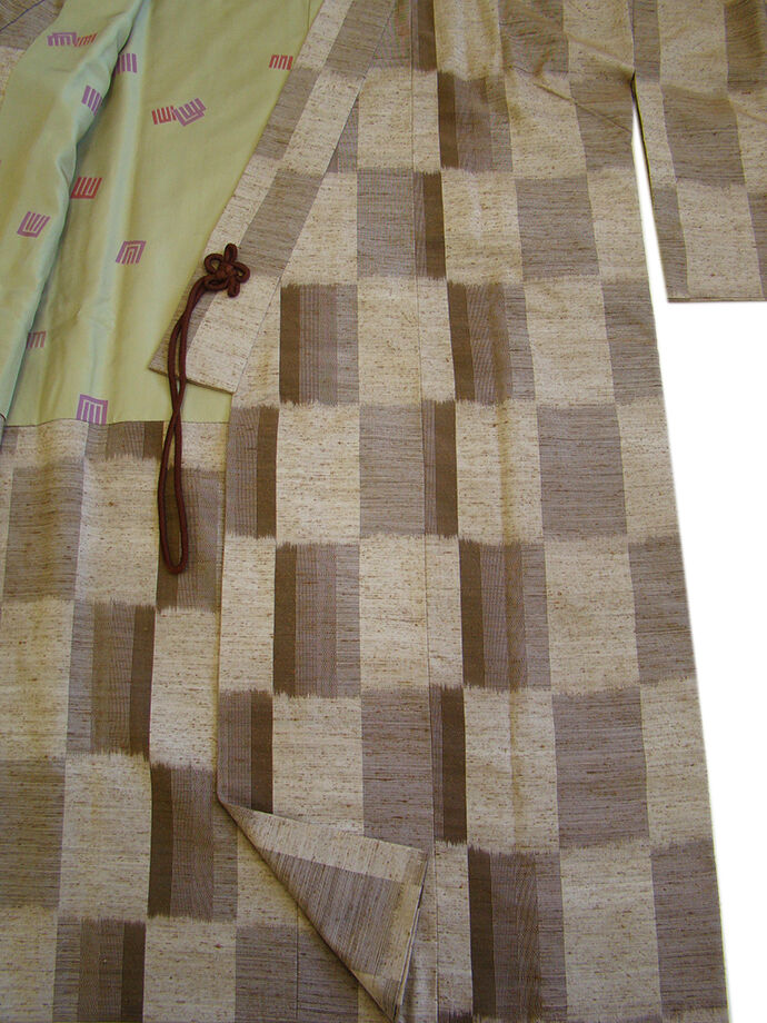 | ちょっと一言 | 温もりに満ちた雰囲気を醸す通好みなふしやぼそも味わい深いぜんまい紬地の道中着です。 ワンランク上の洒落を奏で自分らしさを演出できる素晴らしい逸品です。 |