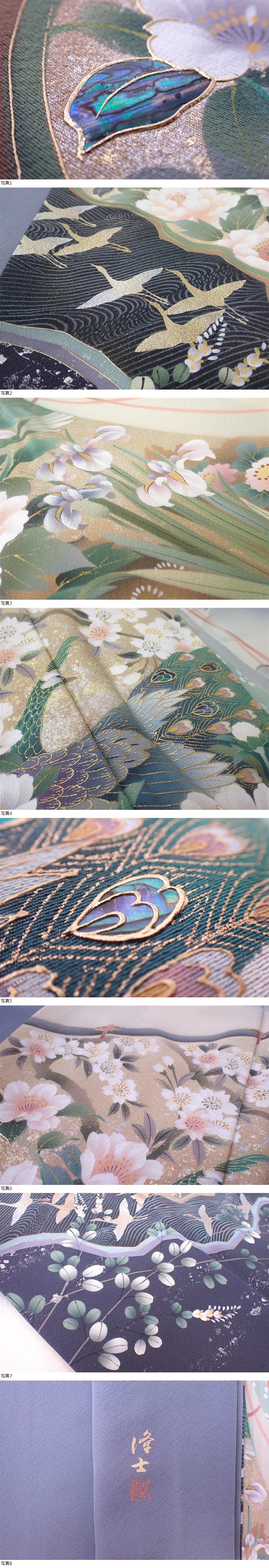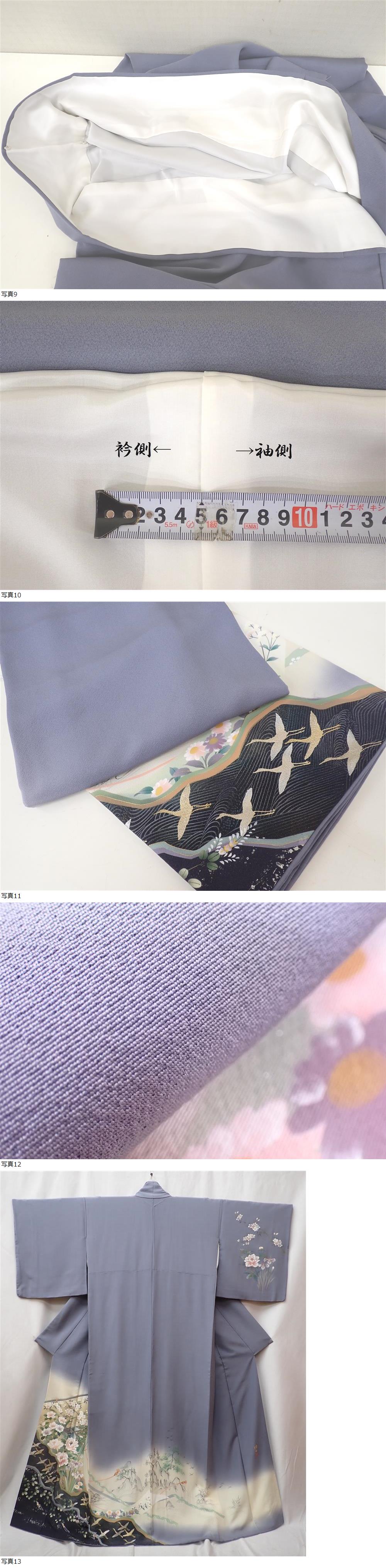 秀品 螺鈿作家 藤本隆士 正絹 訪問着 螺鈿 手描き 草花 暈し染 金彩 身丈161.5cm(+7cm)裄丈67.5cm 鉄色 | ||||