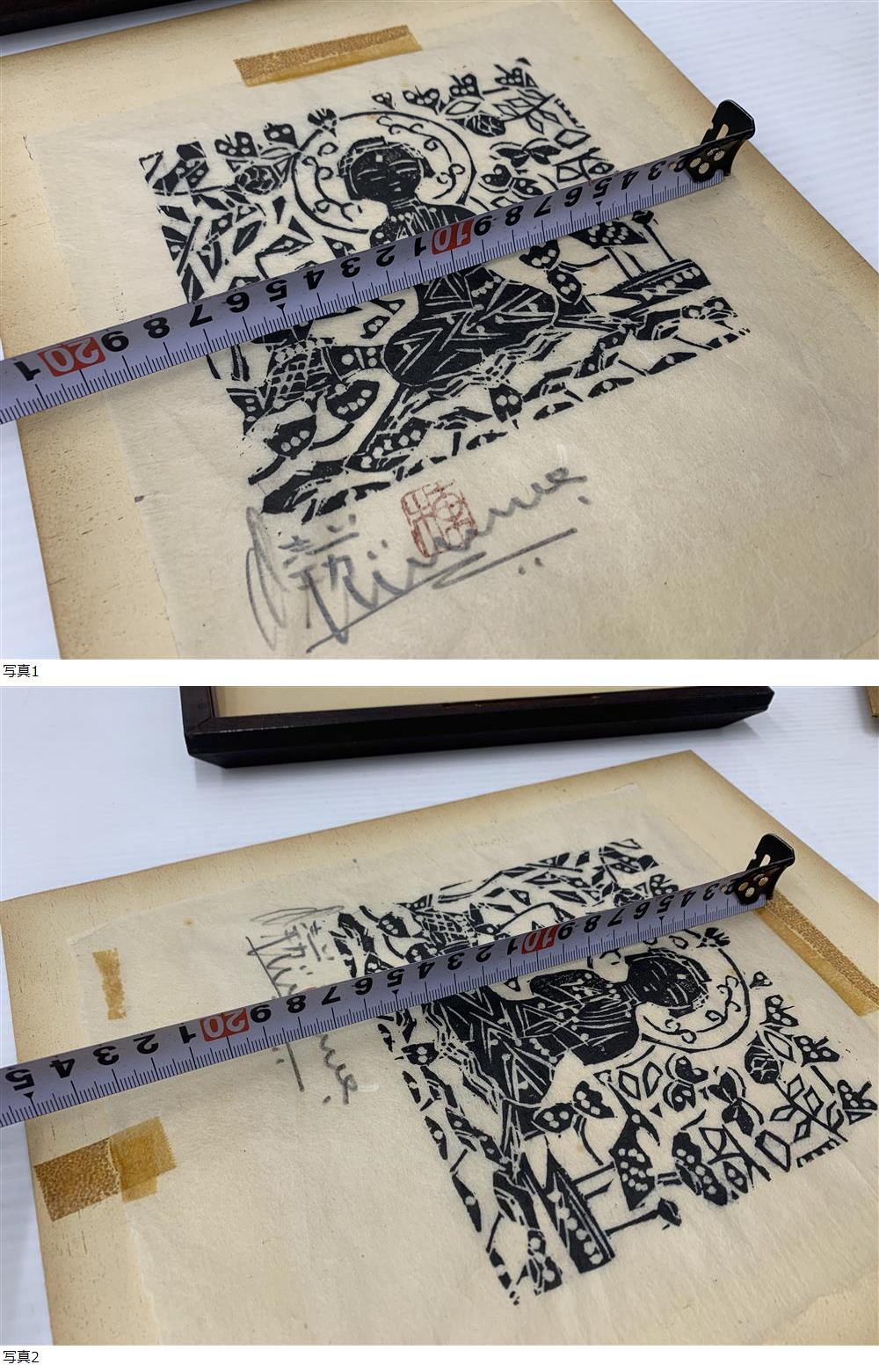 | 27/280☆棟方志功 稚菩薩の柵 美濃和紙? 真作 額装入り☆え1 | |