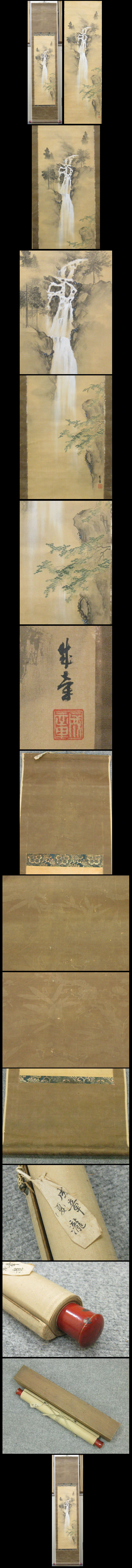 【心庵】掛軸 村上東洲(成章)絹本 瀧図/肉筆 付箱 真作 江戸期 B717 收藏