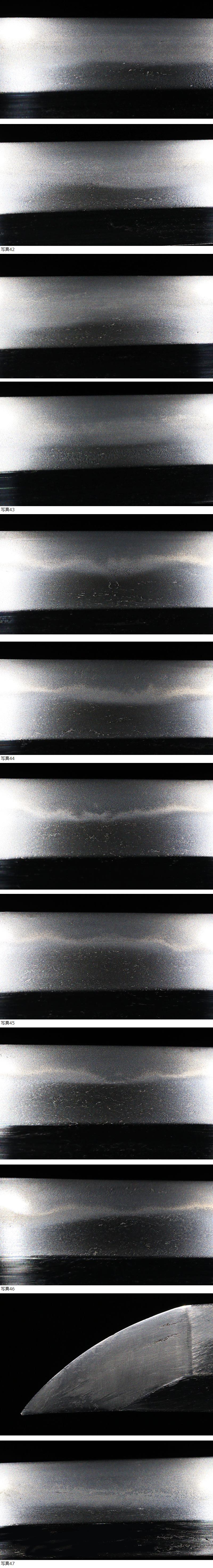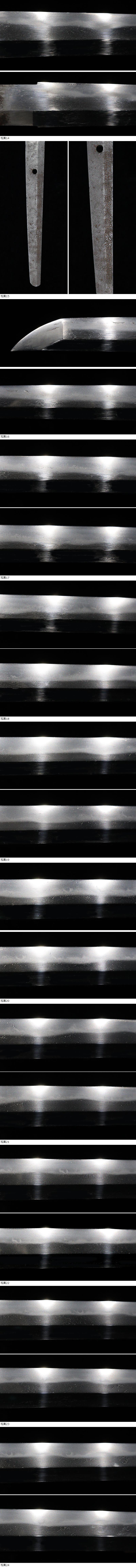 | ■刀剣のサイズ表示について 元幅・・・焼出し付近を測定しております 先幅・・・横手筋付近を測定しております 元重ね・・・焼出し付近の厚みを測定しております 先重ね・・・横手付近の厚みを測定しております (多少の誤差はご容赦ねがいます) ■銃砲類のサイズ表示について 全長・・・銃身先から台木尻までを測定しております 銃身・・・台木を除いて金属部分を測定しております (多少の誤差はご容赦ねがいます) 当社が出品する刀剣類は、入手した時の状態のまま出品しております。 ハバキ、小道具等も当社で調整したり付け替えたりはしておりませんので、合わせではないかというクレームは一切受け付けません。 刀身の疵も隠すことなく載せておりますので写真をよくご覧になってご入札ください。 疵に関して、説明がない等のクレームは一切受け付けません。 写真ではわかりにくい部分は質問欄やお電話でお問い合わせください。 但し、説明欄に表記のない刃切れに関してのみ返品やご相談に応じます。 ※ご落札しご購入されお手元に届いてから20日以内に 登録証に記載されている各都道府県の教育委員会にご連絡し 登録証の所有者変更を必ず行ってください | |||