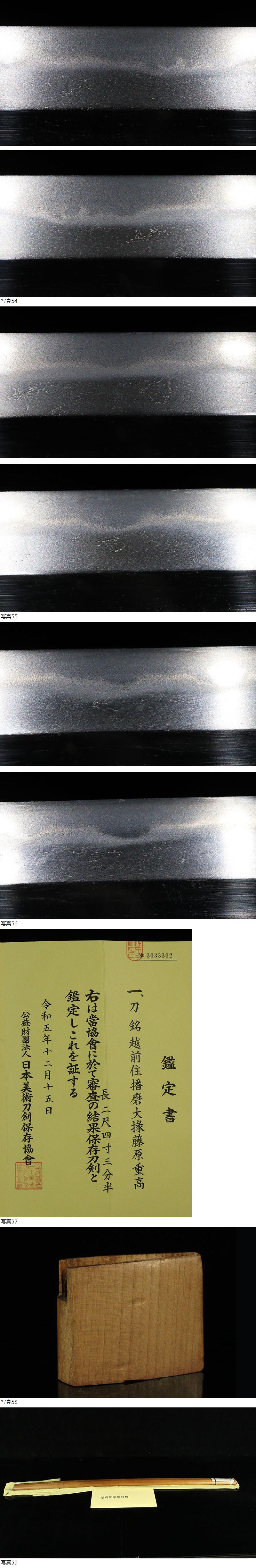 【縁】江戸初期新刀名鍛冶 保存刀剣【越前住播磨大掾藤原重高】大沸よく付き刃中明るい 特別保存鑑定が待ちきれない名刀 二尺四寸三分五厘 收藏