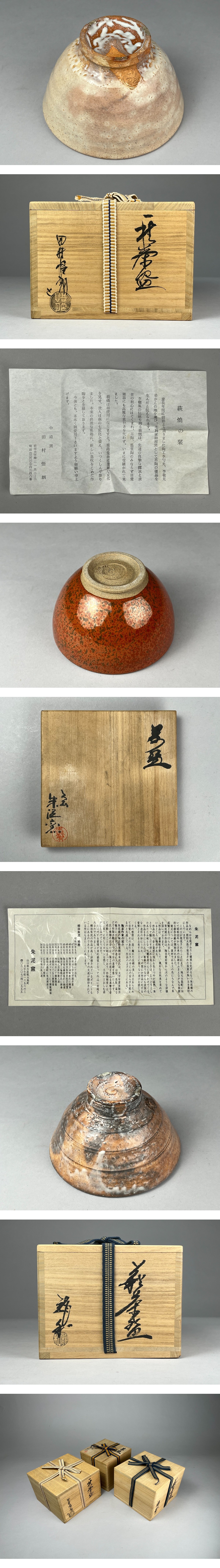 A895 萩焼 小迫窯 田村悟朗/釜屋窯 中村龍和/朱泥窯 柳田朱泥 茶碗 3点 共箱◇抹茶碗 茶道具 古美術 骨董 コレクション 收藏