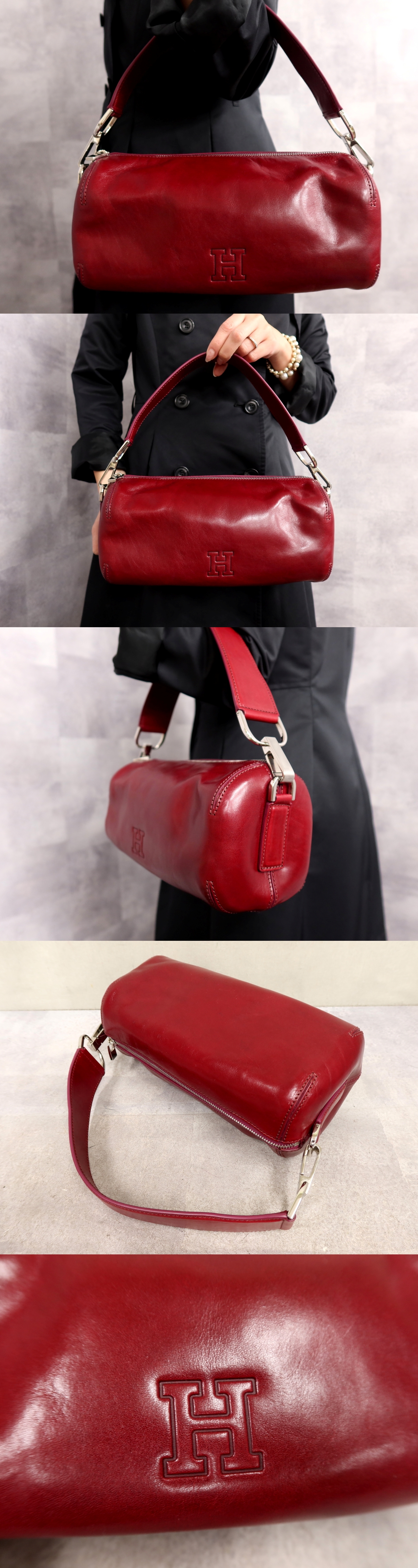 ●超美品●HIROFU ヒロフ●ロゴ型押し●カーフ レザー 本革●ハンド バッグ●赤系●シルバー金具●腕掛け●収納 かばん●Js64447 收藏