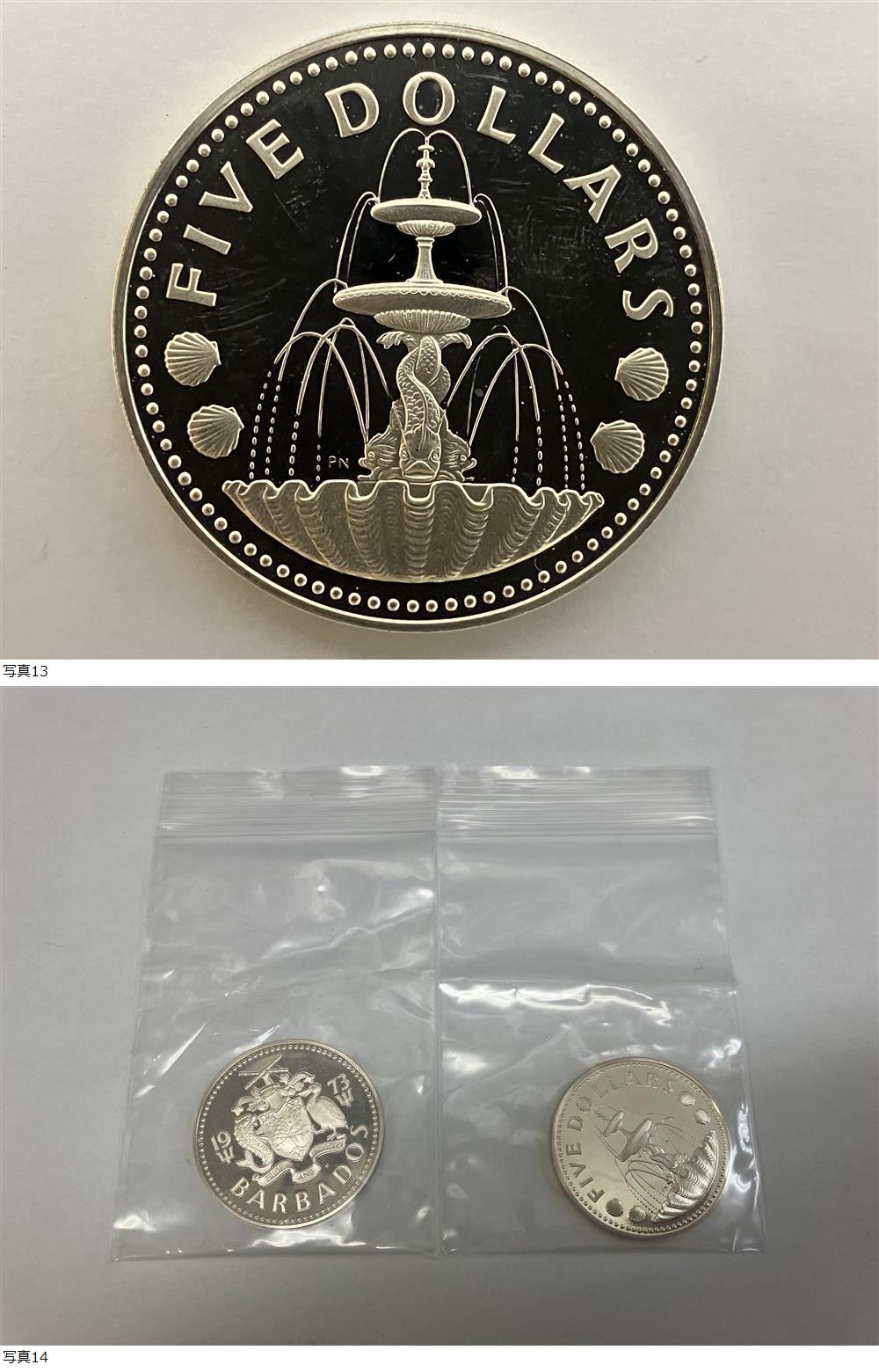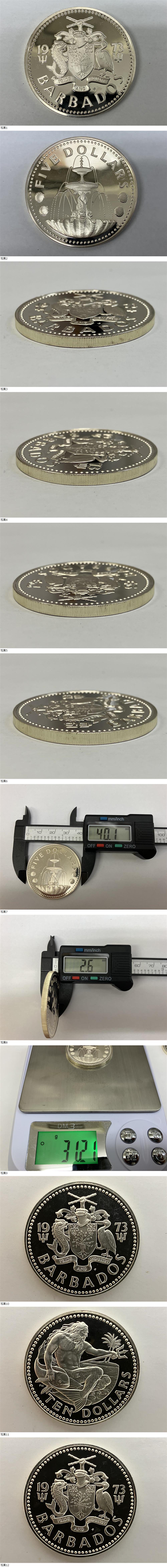 1円〜 美品 現状品 1973年「バルバトス 10ドル銀貨 SV925 約38g」「バルバトス 5ドル銀貨 SV800 約31.2g」 2枚セット 外国銀貨 銀製品 古銭 收藏