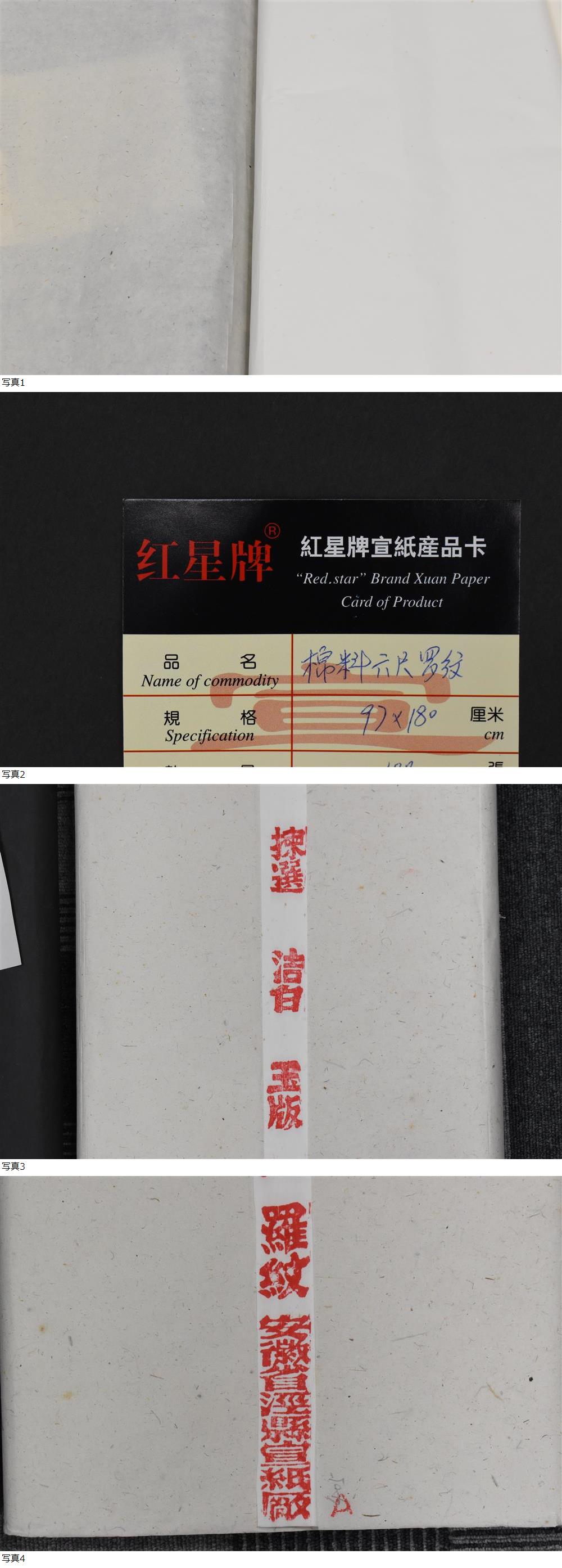 書道 古紙 画仙紙 中国紙 棉料六尺羅紋宣紙 紅星牌 揀選 潔白 玉版 棉料 安徽省涇(けい)県宣紙廠 1999年 97×180cm ⑱ 收藏