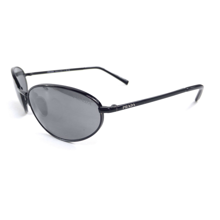 プラダ (PRADA) オーバル ラップアラウンド メタル カーブエンド サングラス SPRA59 ブラック(新品同様)中古 收藏
